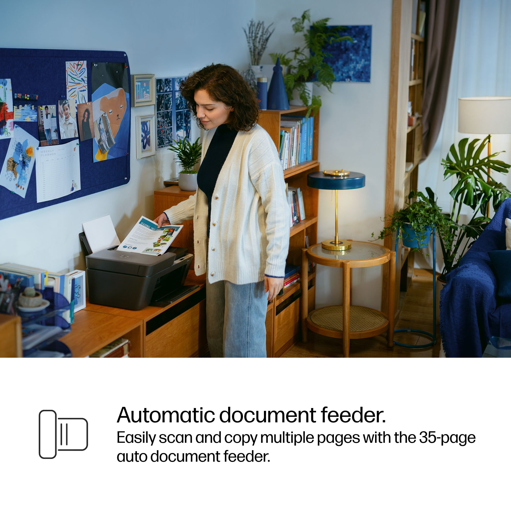 Thuis printen is supereenvoudig Print, scan en kopieer moeiteloos met deze compacte, draadloze en handige thuisprinter met automatische documentinvoer. Print alles, van retourlabels tot leerzame en kleurrijke printwerkjes.[3]. Geschikt voor HP Instant Ink