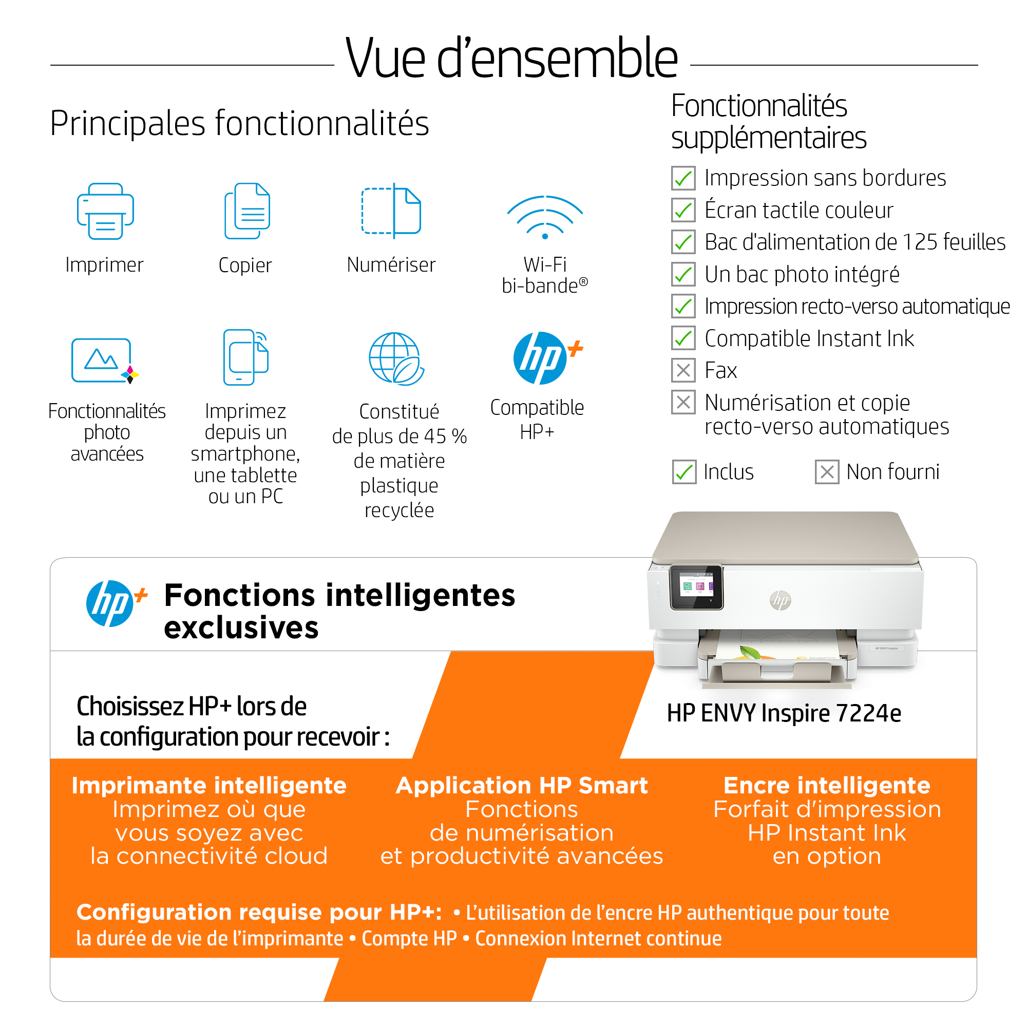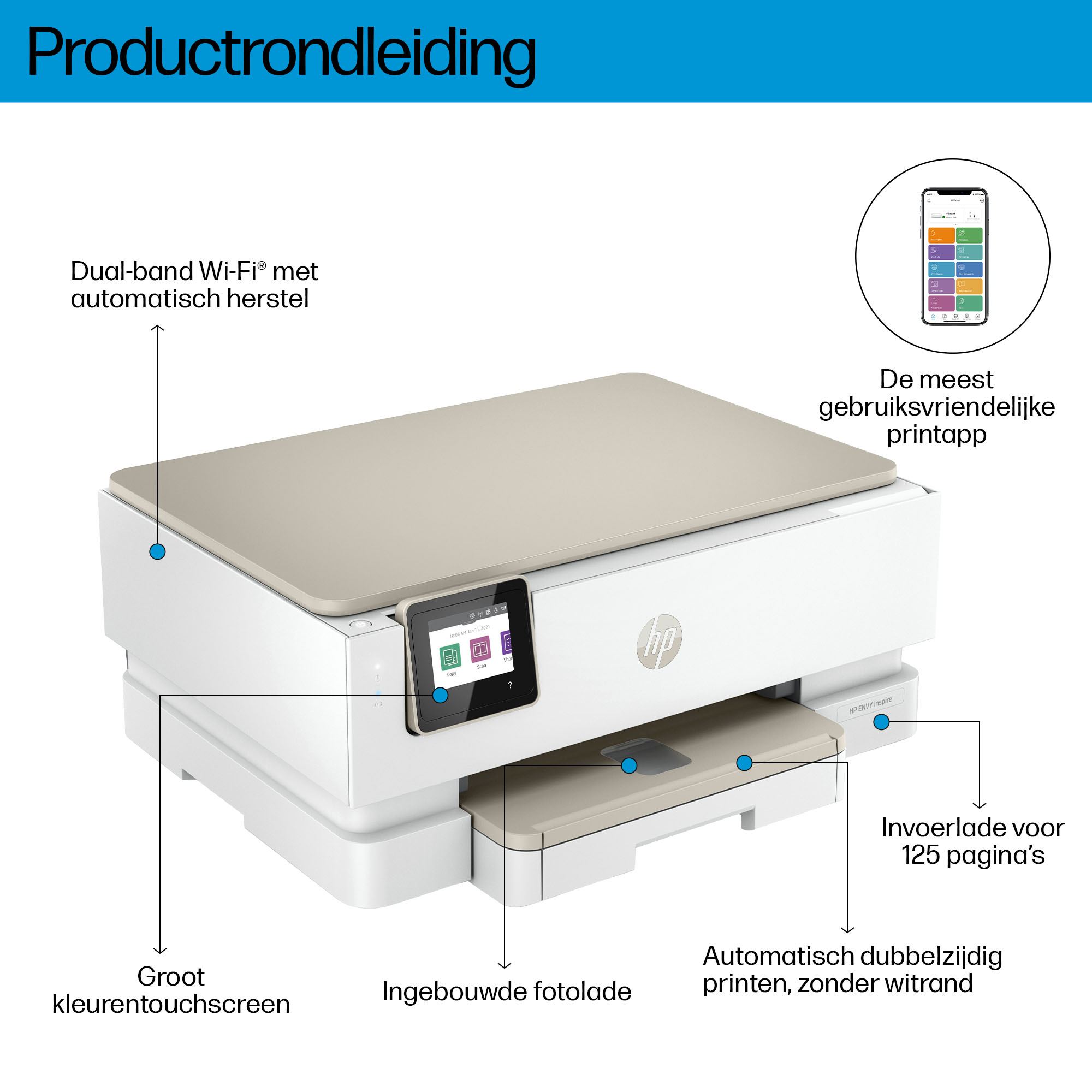 HP ENVY Inspire 7224e Draadloos All-in-One Kleur Printer, Instant Ink; Kopieerapparaat, scanner, Thermische inkjet, Afdrukken in kleur, 4800 x 1200 DPI, A4, Direct printen, Beige