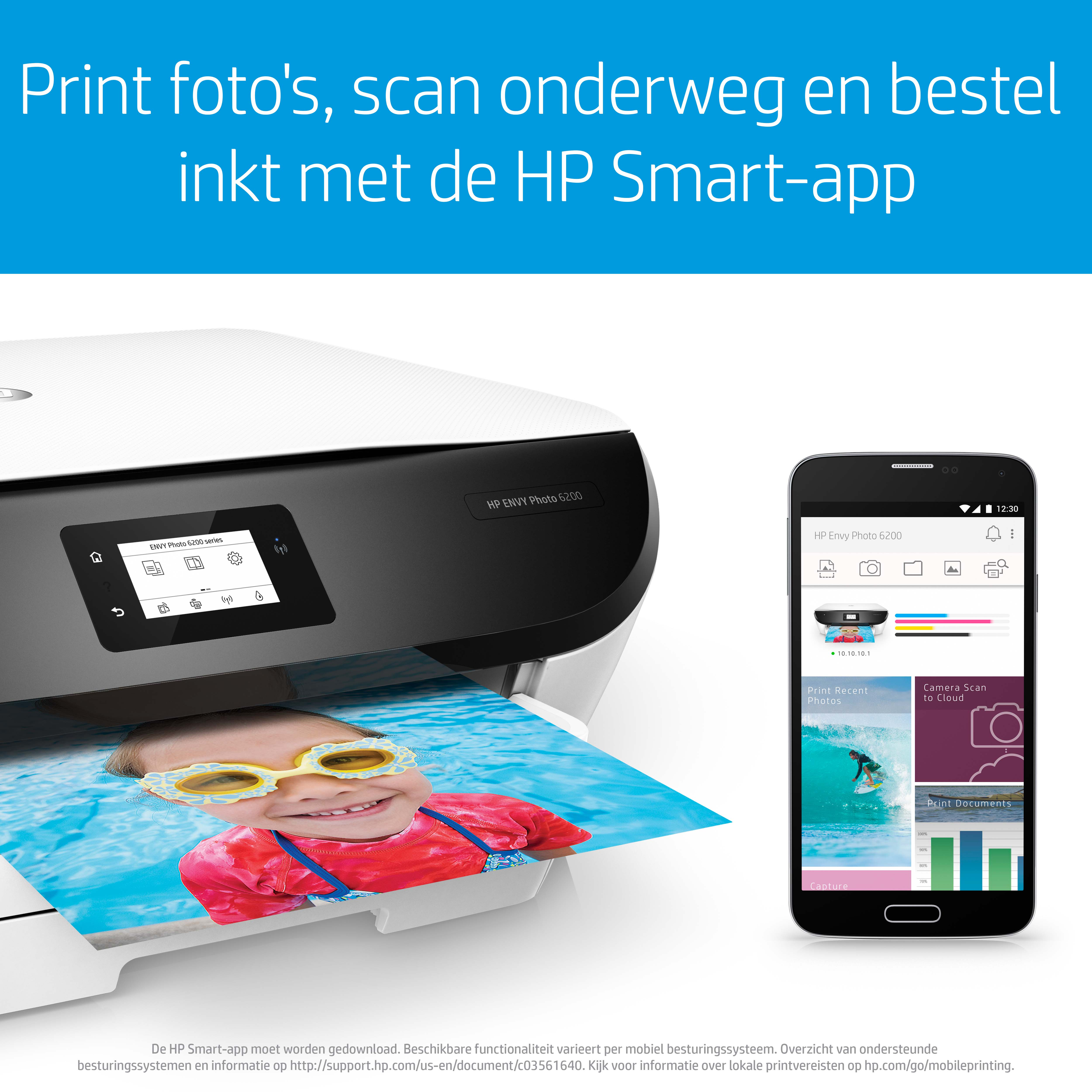 HP ENVY Photo 6232 Draadloos All-in-One Kleur Printer, Instant Ink; Foto's printen, Thermische inkjet, Afdrukken in kleur, 4800 x 1200 DPI, A4, Direct printen, Zwart, Wit
