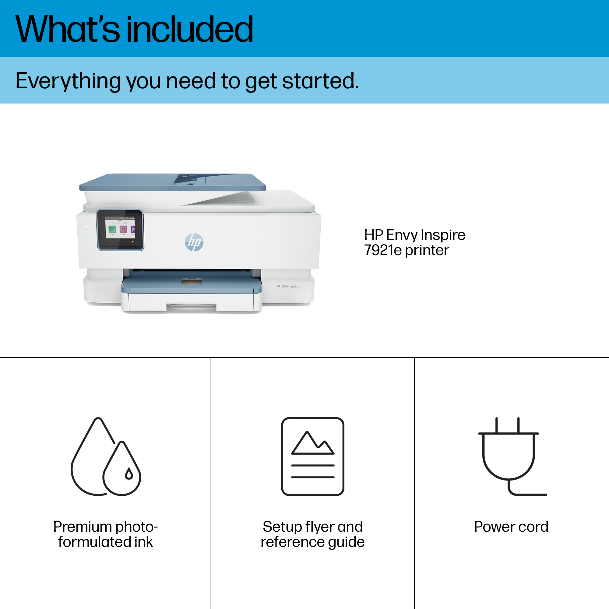 HP ENVY Inspire 7921e Draadloos All-in-One Kleur Printer, Instant Ink; Foto's printen, Thermische inkjet, Afdrukken in kleur, 4800 x 1200 DPI, A4, Direct printen, Blauw
