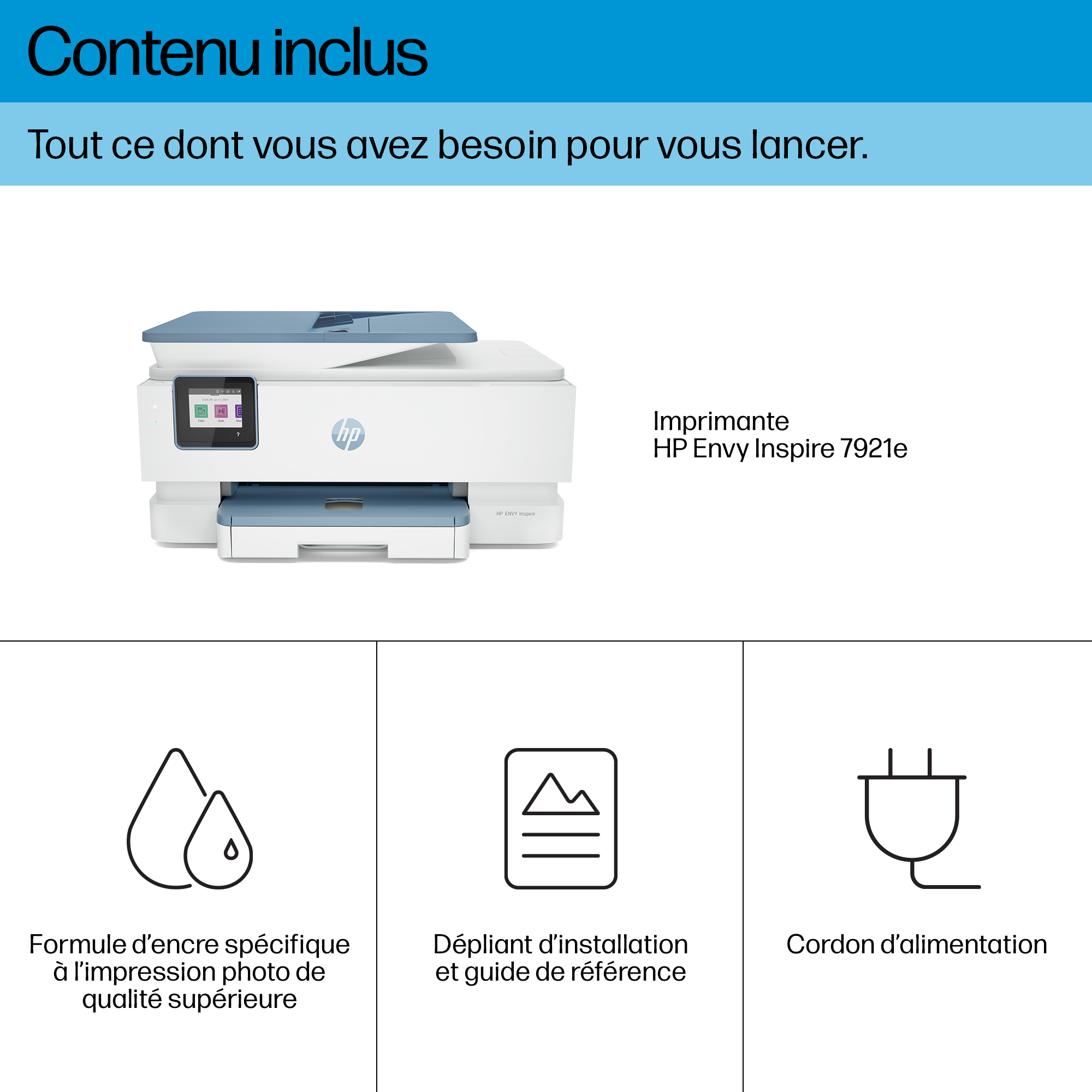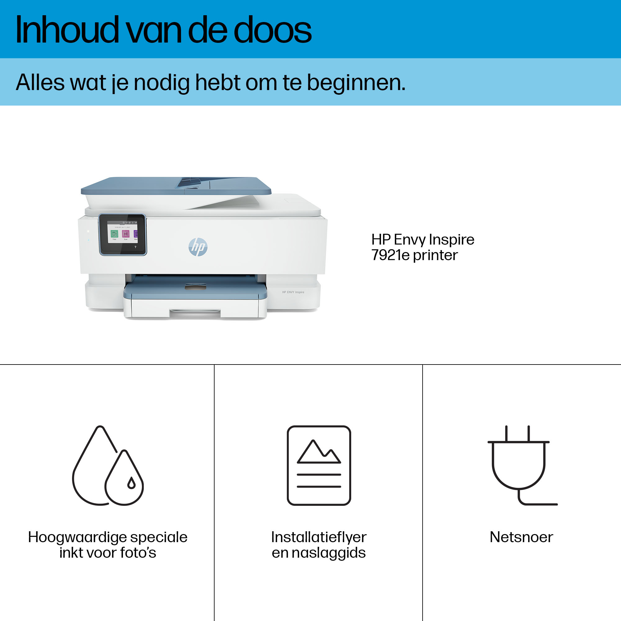 HP ENVY Inspire 7921e Draadloos All-in-One Kleur Printer, Instant Ink; Foto's printen, Thermische inkjet, Afdrukken in kleur, Kopiëren in kleur, Scannen in kleur, Blauw