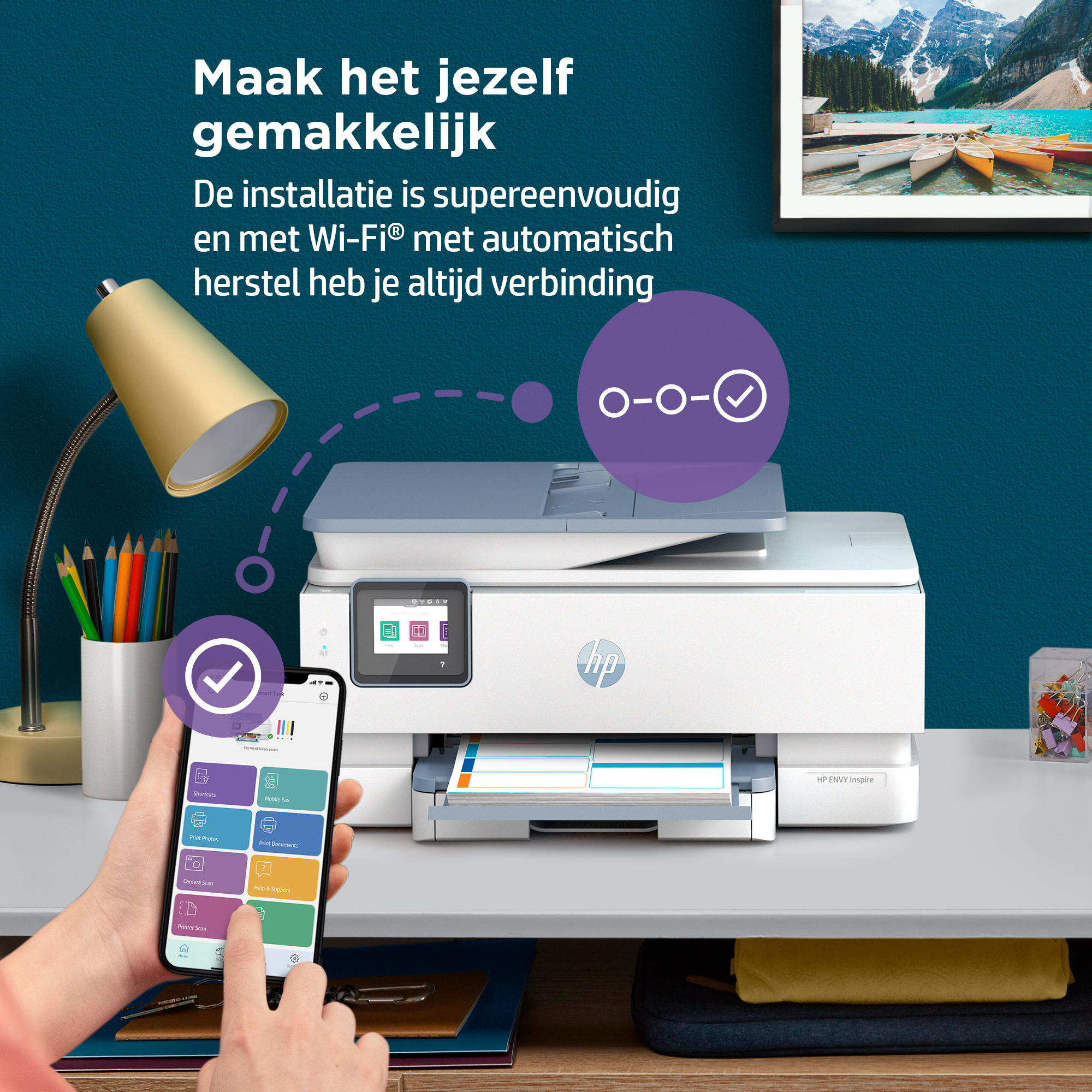 Dé thuisprinter voor alles wat je nodig hebt. Werk, leer en creëer met de printer die alles print, van hoogwaardige foto's tot documenten. Kies HP+ en profiteer van het slimme printsysteem waarmee je altijd en overal verbonden bent en kunt printen[1]. Geschikt voor HP Instant Ink