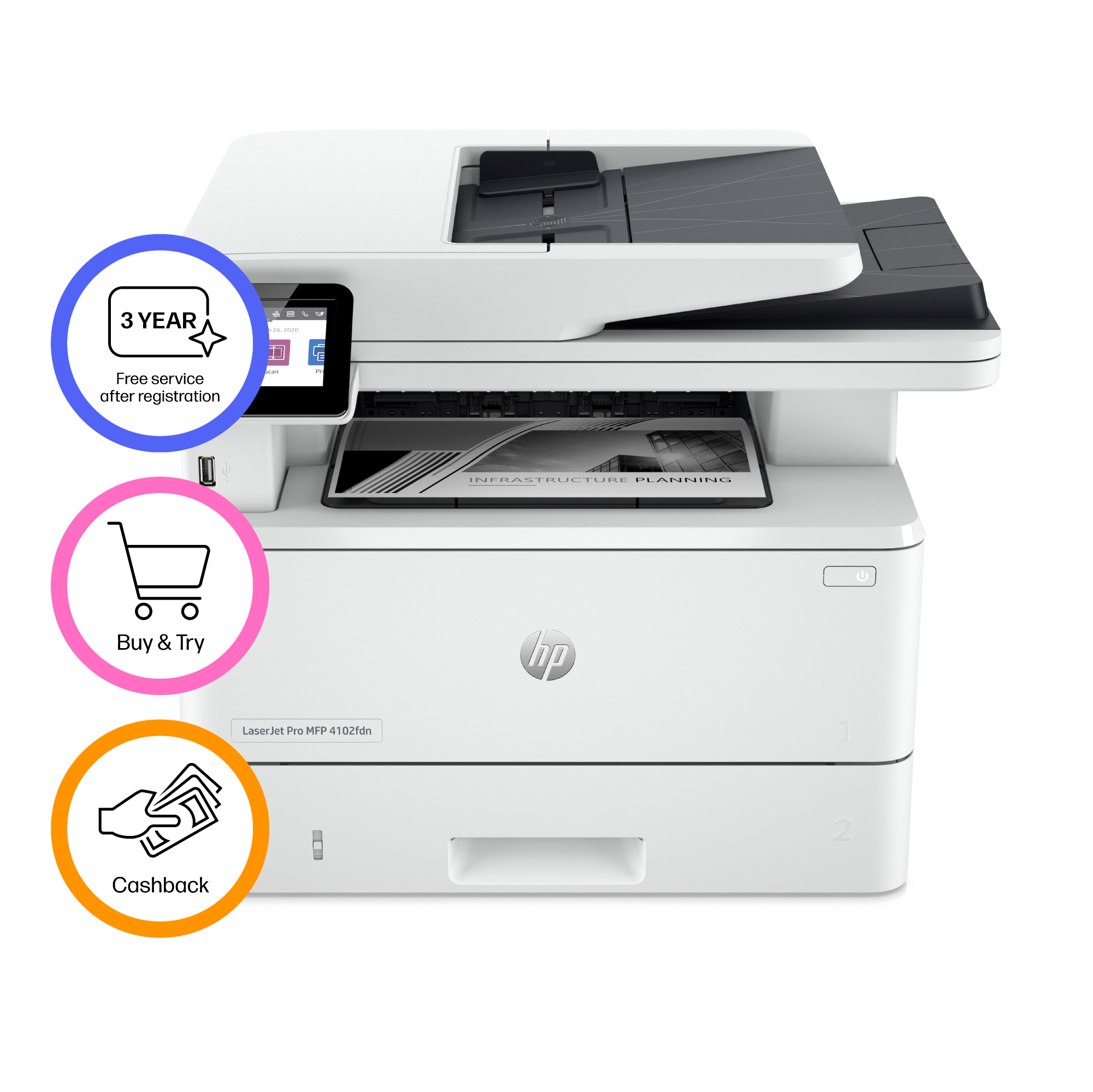 HP LaserJet Pro MFP 4102fdn printer, Zwart-wit, Printer voor Kleine en middelgrote ondernemingen, Printen, kopiëren, scannen, faxen, Geschikt voor Instant Ink; printen vanaf telefoon of tablet; Automatische documentinvoer; Dubbelzijdig printen, Laser, Zwa