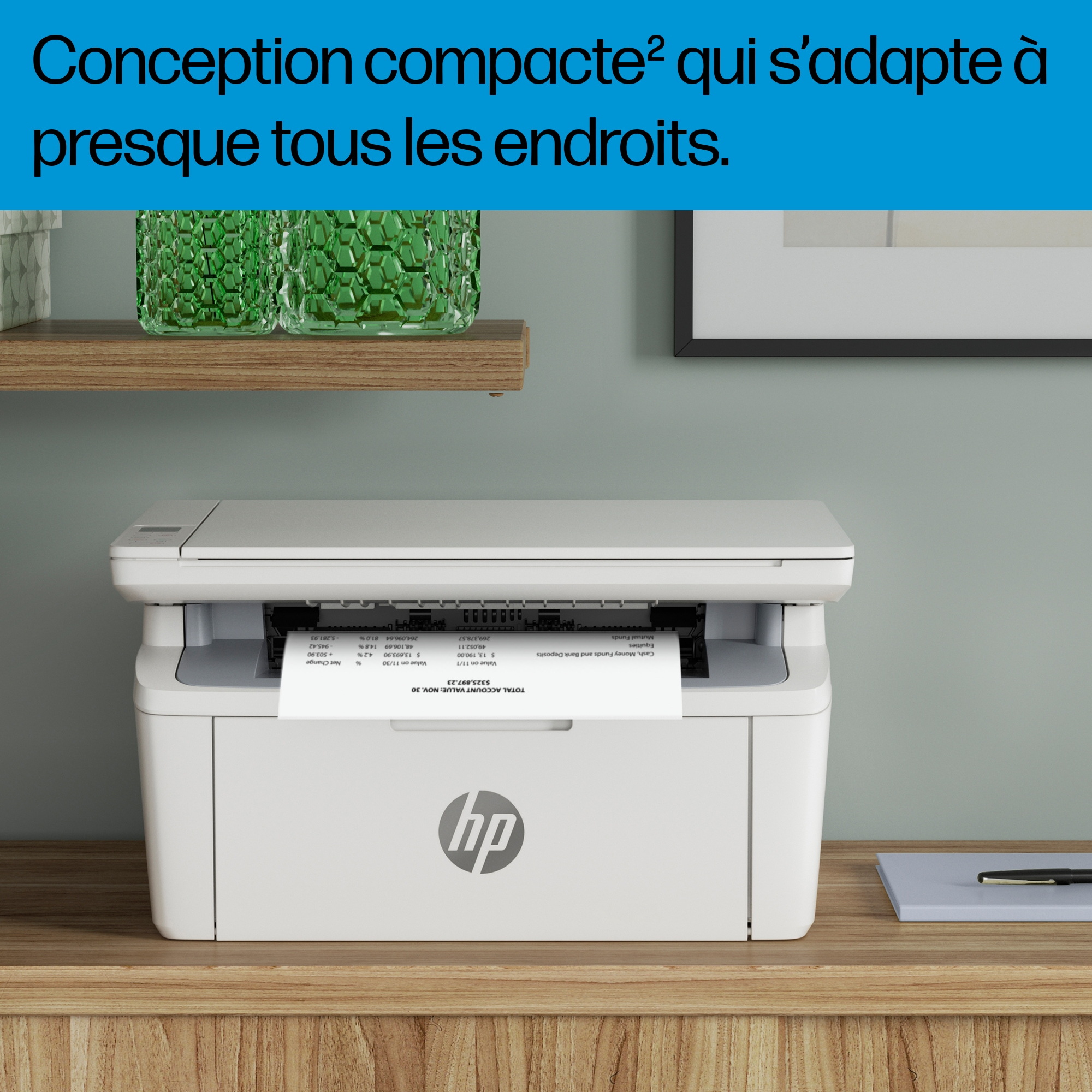 Werkt efficiënt. Past overal. Een efficiënte multifunctionele printer die bij je ruimte en je budget past. Print snel met de kleinste laserprinter van HP en de tijdbesparende HP Smart-app.[1,2] Kies voor laserafdrukken van professionele kwaliteit en een eenvoudige installatie..