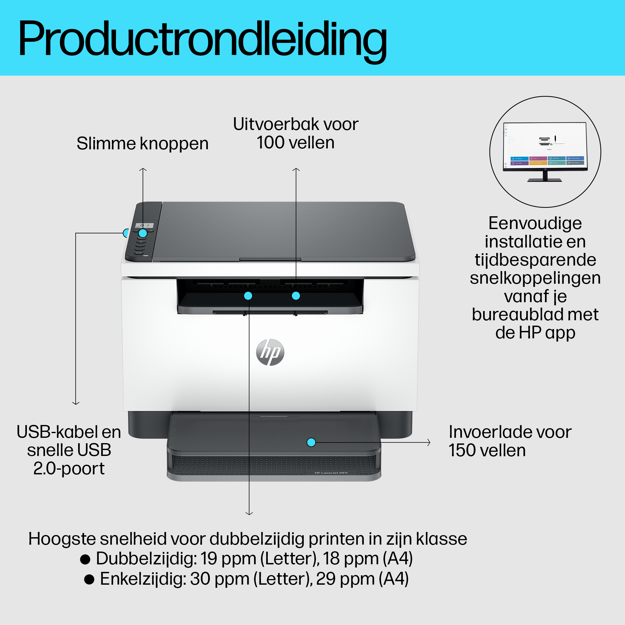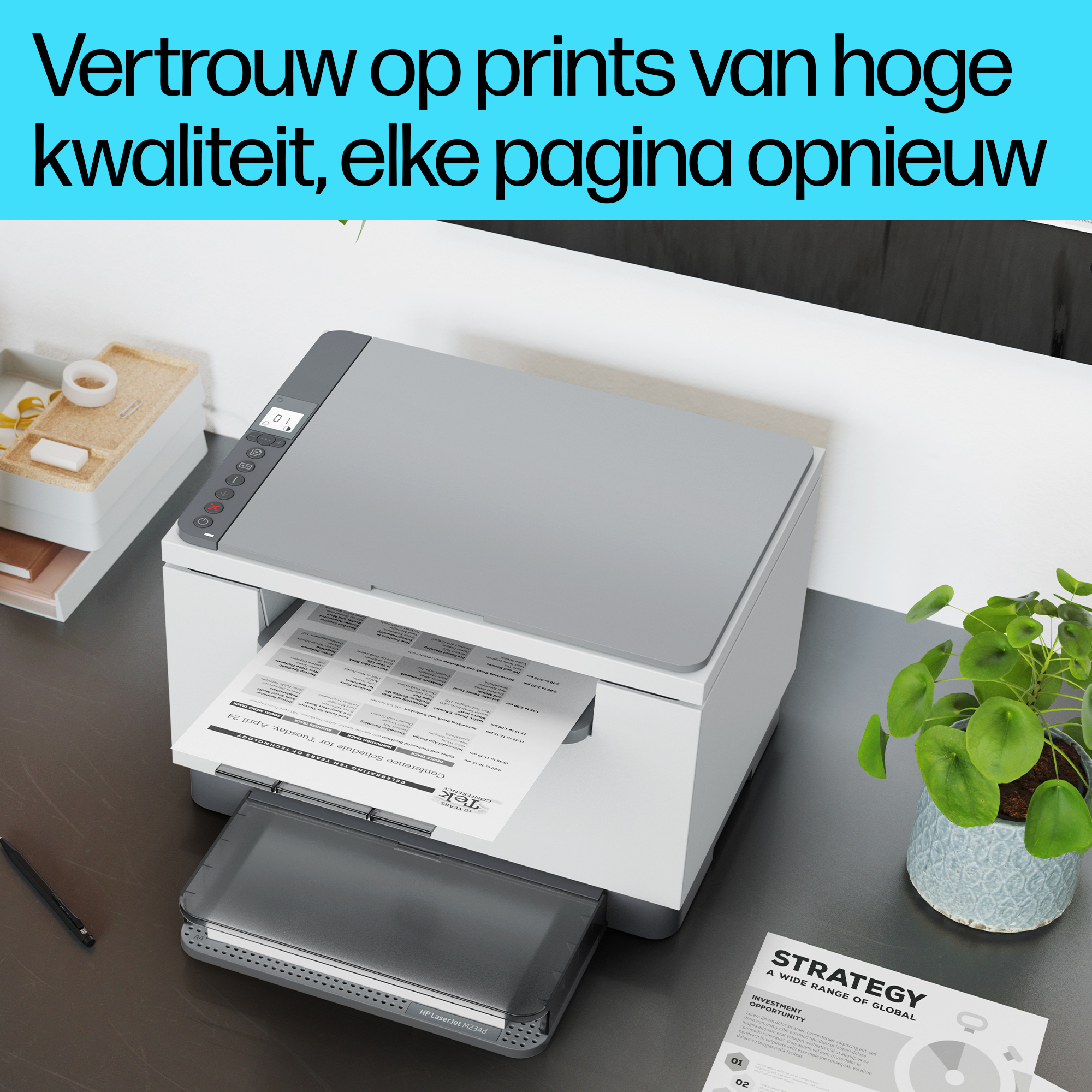 Snelle, betrouwbare prestaties. Unieke prijs-kwaliteitverhouding Verhoog de productiviteit met deze krachtige zwart-wit printer in een bekroond, compact ontwerp.[2] Ervaar de hoogste snelheid voor dubbelzijdig printen in zijn klasse[8] met kopiëren en scannen, plus vereenvoudigde installatie en tijdbesparende functies met de HP app.[3]. HP JetIntelligence cartridge