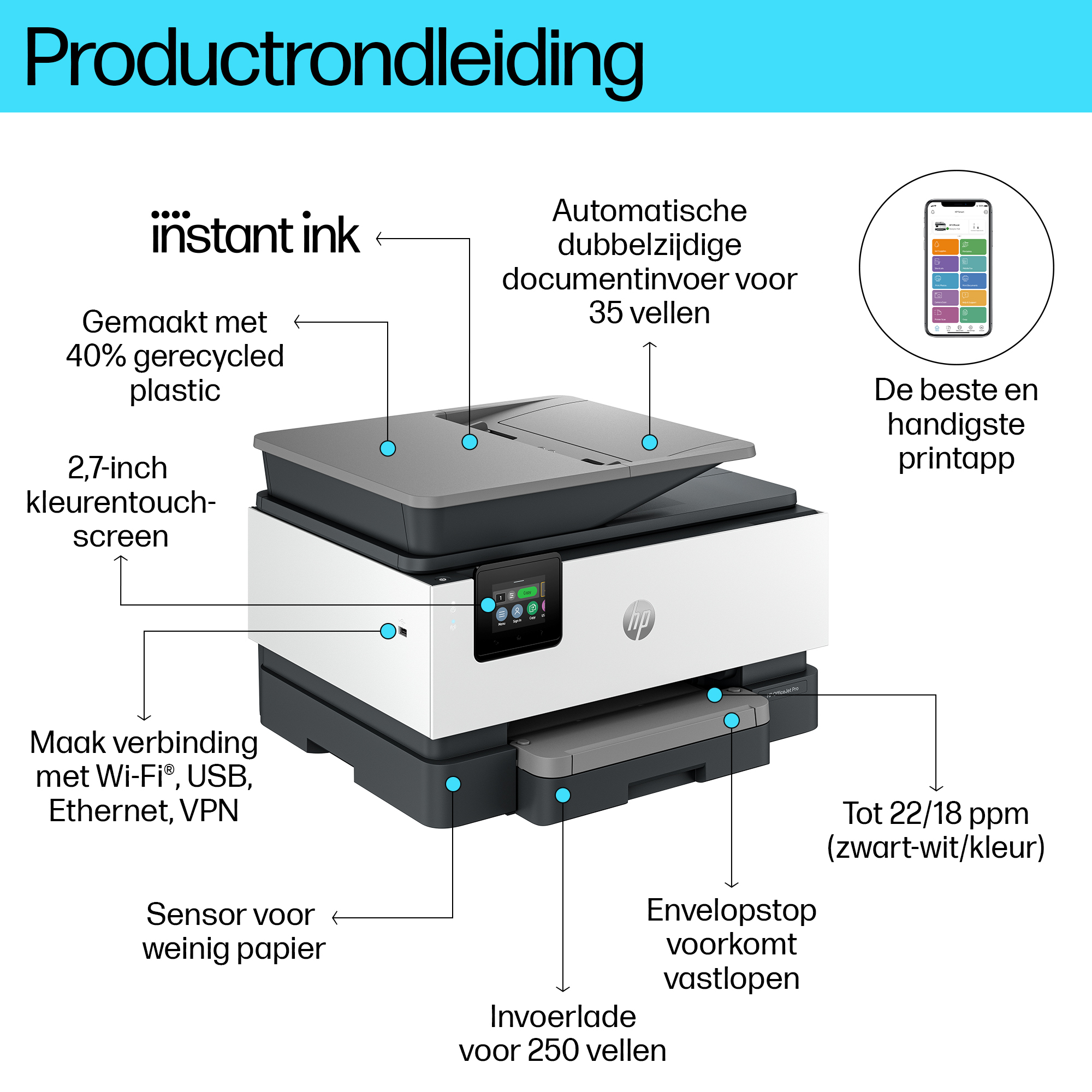 Dit is een printer die HP+ ondersteunt. Kies voor HP+ bij de installatie van het product om de voordelen te activeren. Voor HP+ is een HP account, continue verbinding met het internet en exclusief gebruik van originele HP inktcartridges tijdens de gehele levensduur van de printer vereist. Meer informatie op: http://www.hp.com/plus