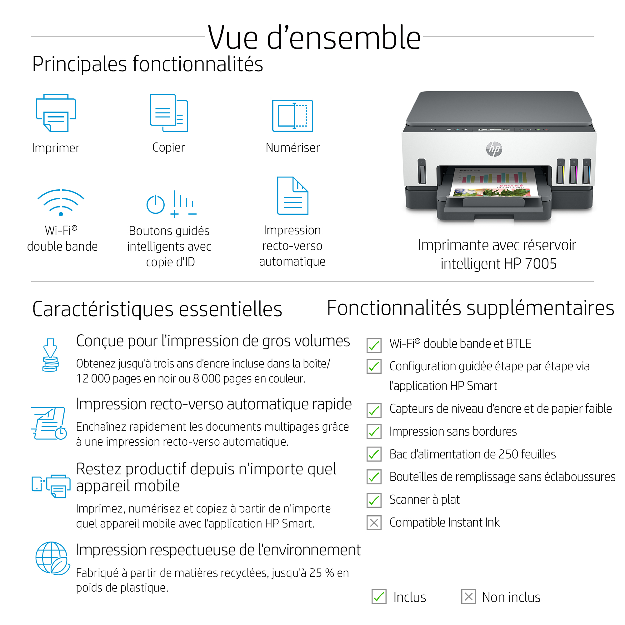 HP Smart Tank 7005 All-in-One, Thermische inkjet, Afdrukken in kleur, 4800 x 1200 DPI, A4, Direct printen, Grijs, Wit
