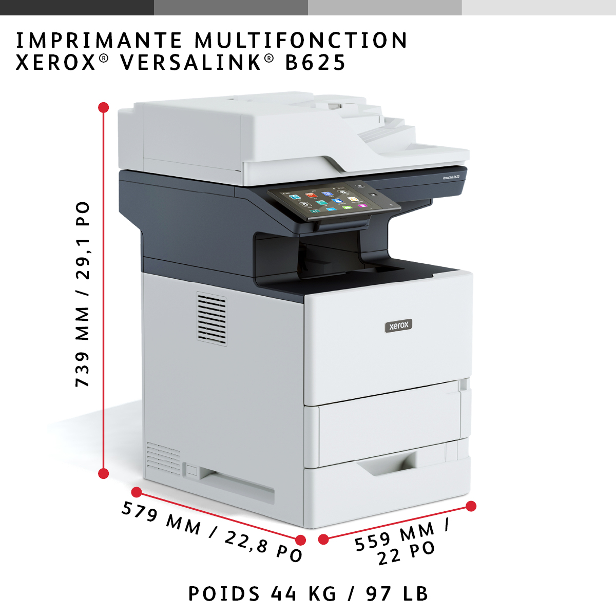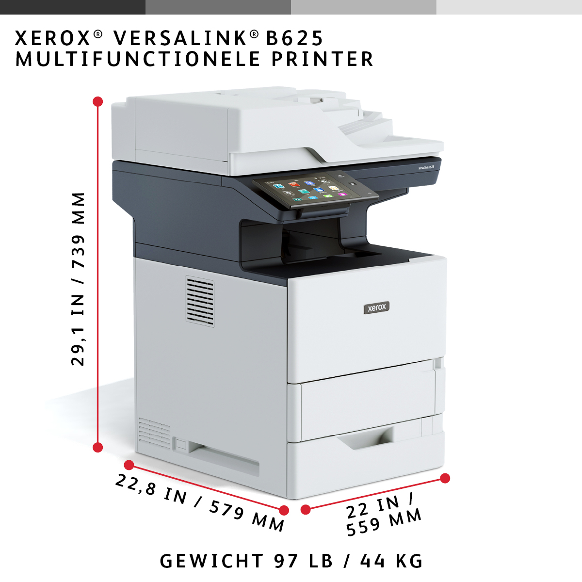 VersaLink B625 A4 61 ppm dubbelzijdig kopiëren en printen, scannen en faxen, geschikt voor PS3 PCL5e/6 2 laden voor max. 650 vel