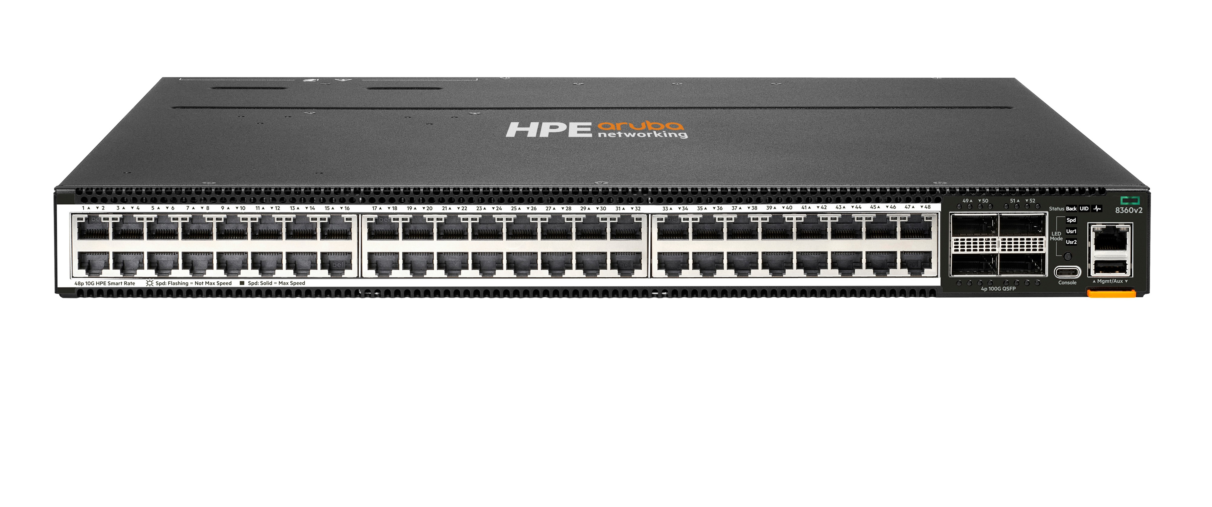 HPE Aruba Networking CX 8360-48XT4C v2 48p 1G/10GBase-T 4p 100G QSFP28 BF 3 Fans 2AC Bundle, Managed, L3, 10G Ethernet (100/1000/10000), Rack-montage, 1U