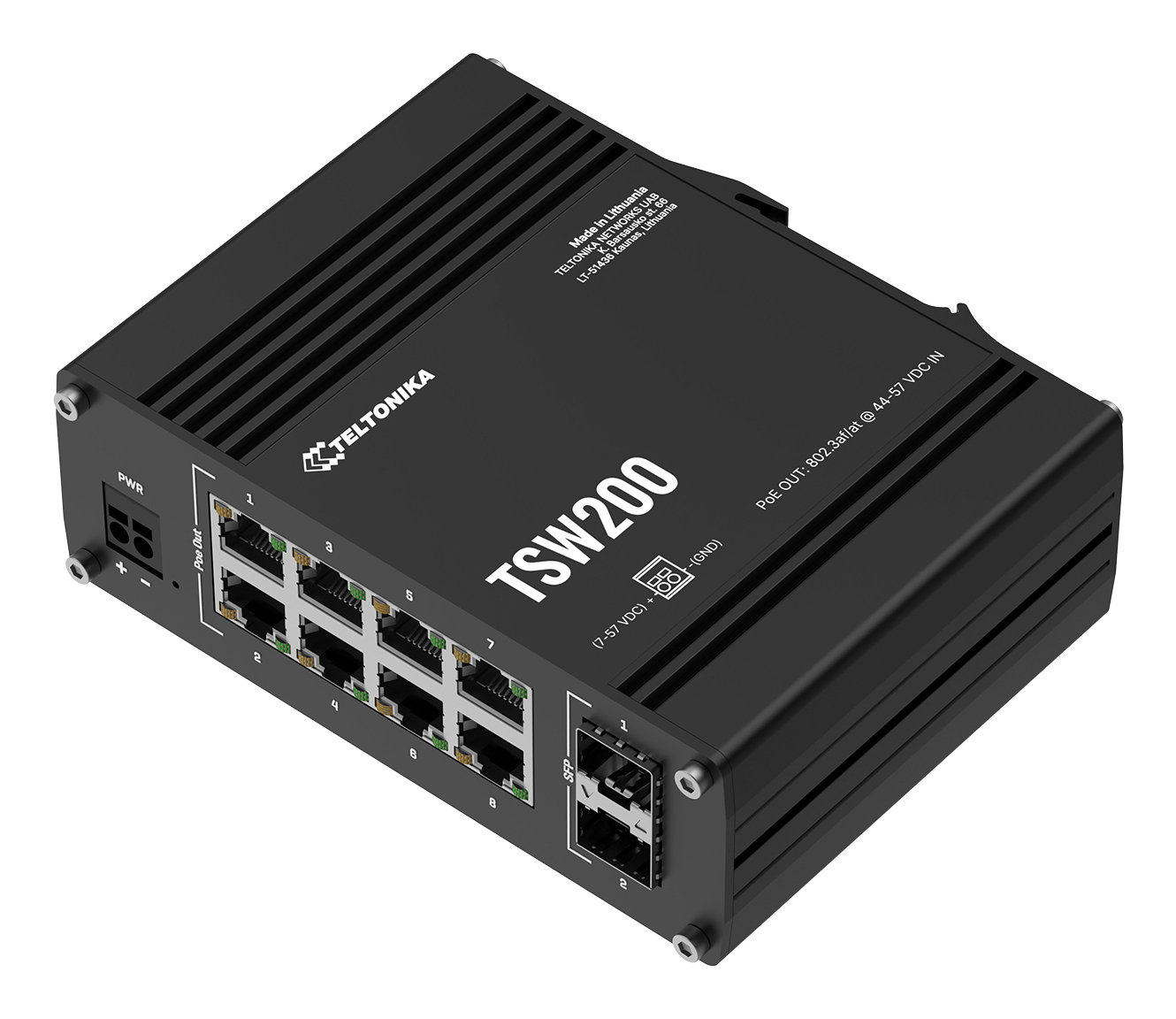 Teltonika TSW200, Unmanaged, Gigabit Ethernet (10/100/1000), Power over Ethernet (PoE), Ophangsysteem voor aan de muur