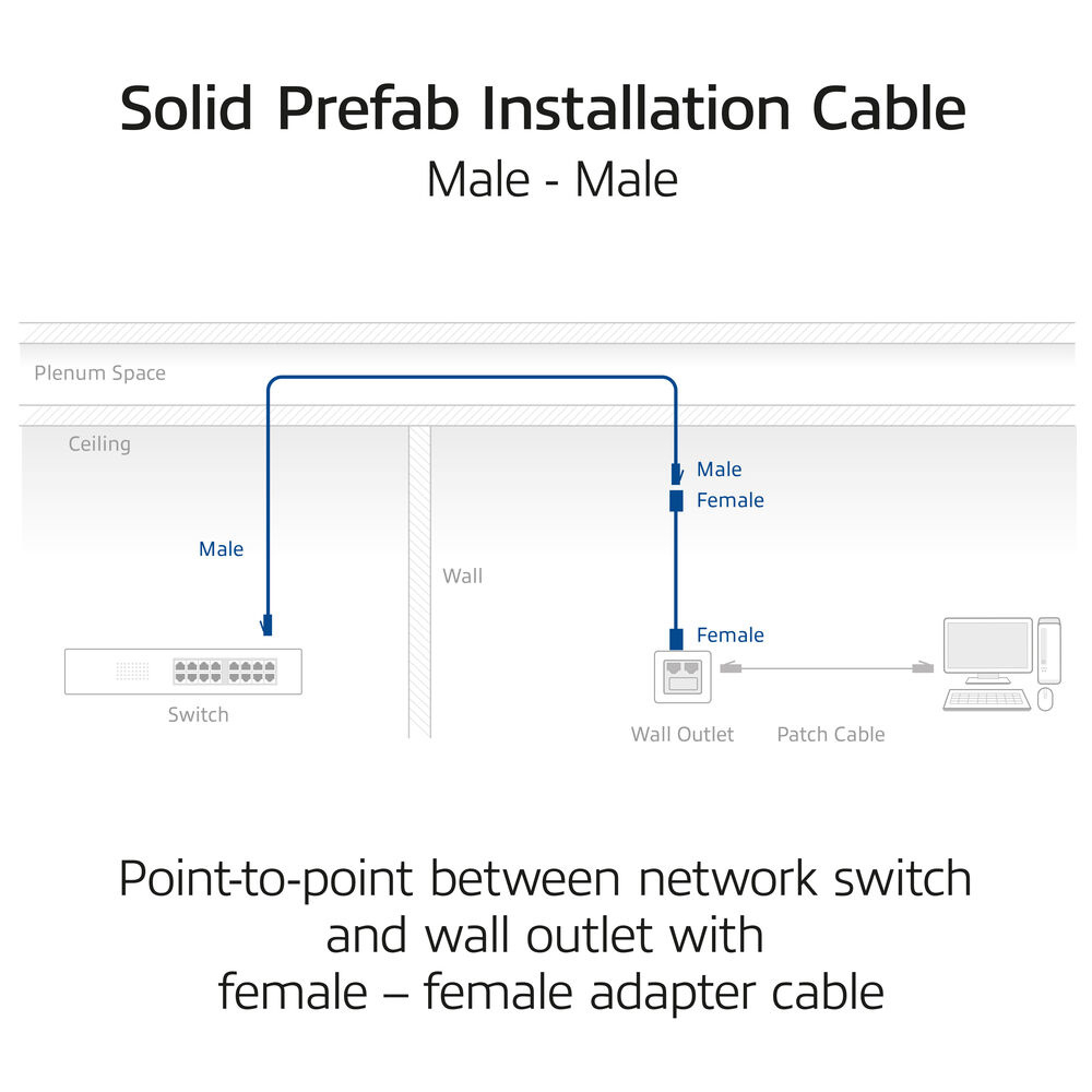 De ACT prefab CAT6A solid installatiekabels zijn direct klaar voor gebruik. De RJ45-connectoren zijn vooraf afgemonteerd, waardoor het risico op fouten tijdens montage op locatie wordt voorkomen. Hierdoor wordt tijd bespaard en er is geen speciaal gereedschap nodig.