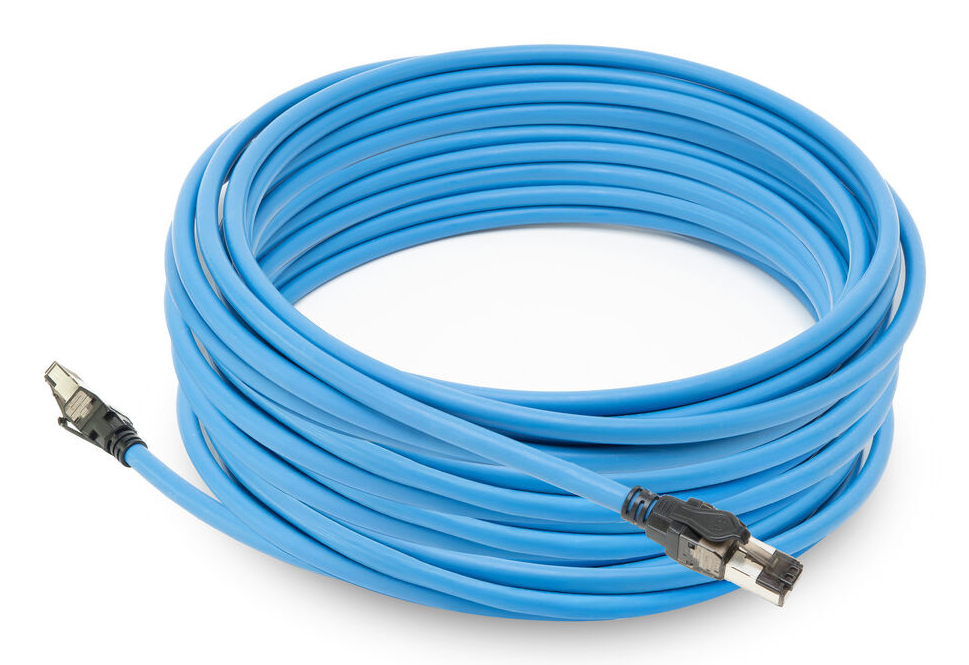 Blauw 80 meter S/FTP CAT6A B2ca PoE++ 100W solid prefab installatiekabel, RJ45 male – male