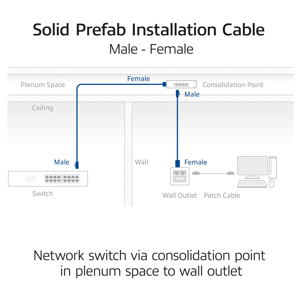 De ACT prefab CAT6A solid installatiekabels zijn direct klaar voor gebruik. De RJ45-connectoren zijn vooraf afgemonteerd, waardoor het risico op fouten tijdens montage op locatie wordt voorkomen. Hierdoor wordt tijd bespaard en er is geen speciaal gereedschap nodig.