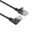 Zwarte 5 meter U/UTP CAT6A LSZH slimline patchkabel met RJ45 connectoren, recht naar 90° haaks rechts