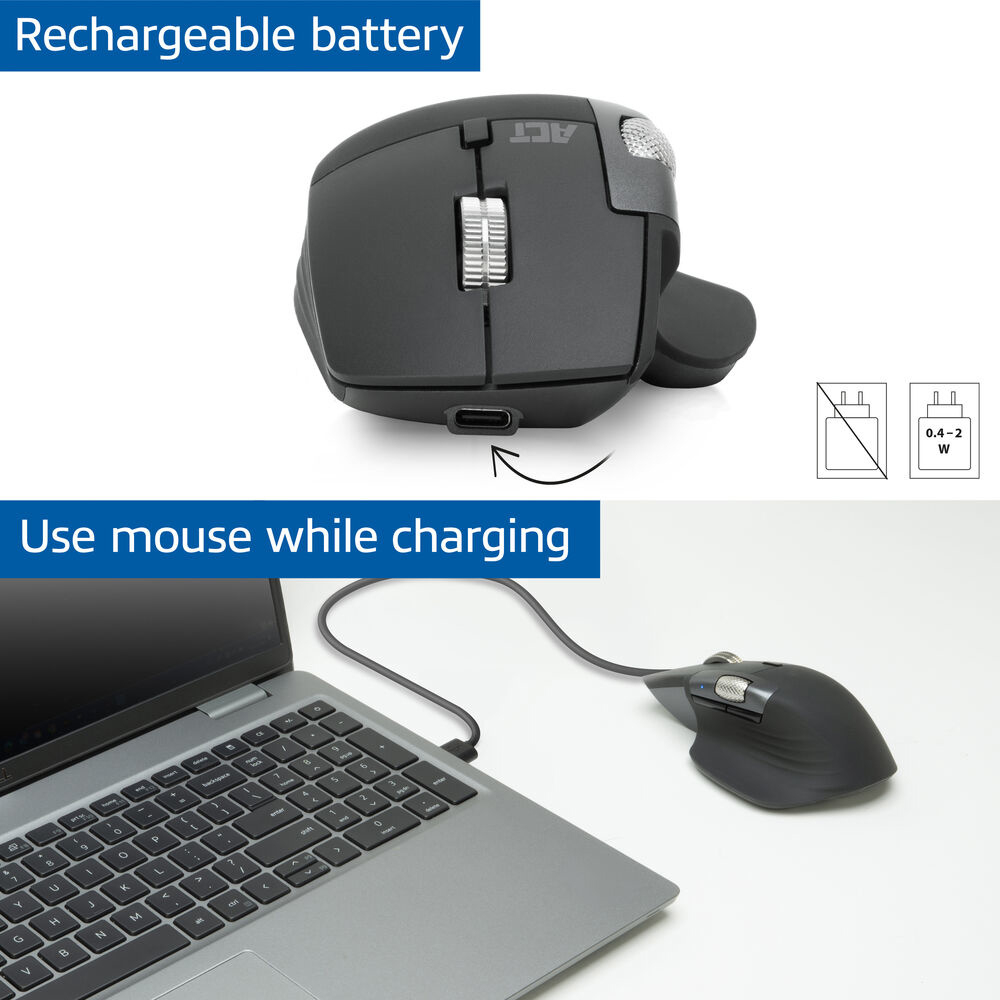 De ACT AC5147 draadloze multi-connect muis is ontworpen voor comfort dankzij de goede grip en handige zijknoppen voor het gemakkelijk navigeren door pagina’s.