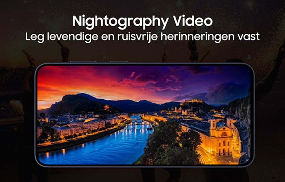 Het royale scherm is helderder en biedt tot 120Hz verversingssnelheid, wat zorgt voor de beste beeldkwaliteit ooit in de A‑reeks. Het blijft leesbaar in fel zonlicht en vermindert vermoeide ogen – ideaal voor wie zijn smartphone veel gebruikt