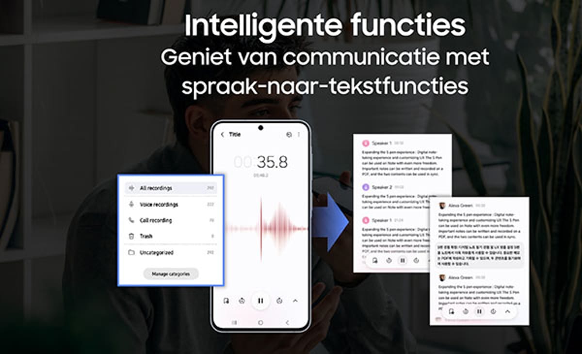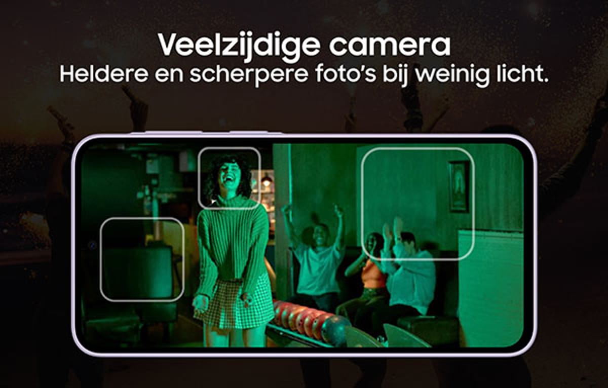 Film, fotografeer en stream zonder moeite, nu met slimme AI‑ondersteuning. Zoek supersnel, bewerk je foto's meteen en maak prachtige portretfoto's. Je Galaxy A‑reeks is zoals altijd een duurzame en elegante compagnon, met een batterij die de hele dag meegaat, veel opslagruimte én een betaalbare prijs. Er is een model voor ieders smaak en noden.