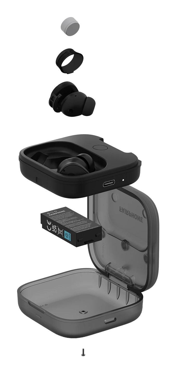 Fairphone Fairbuds, True Wireless Stereo (TWS), 20 - 20000 Hz, Oproepen/muziek, Headset, Zwart