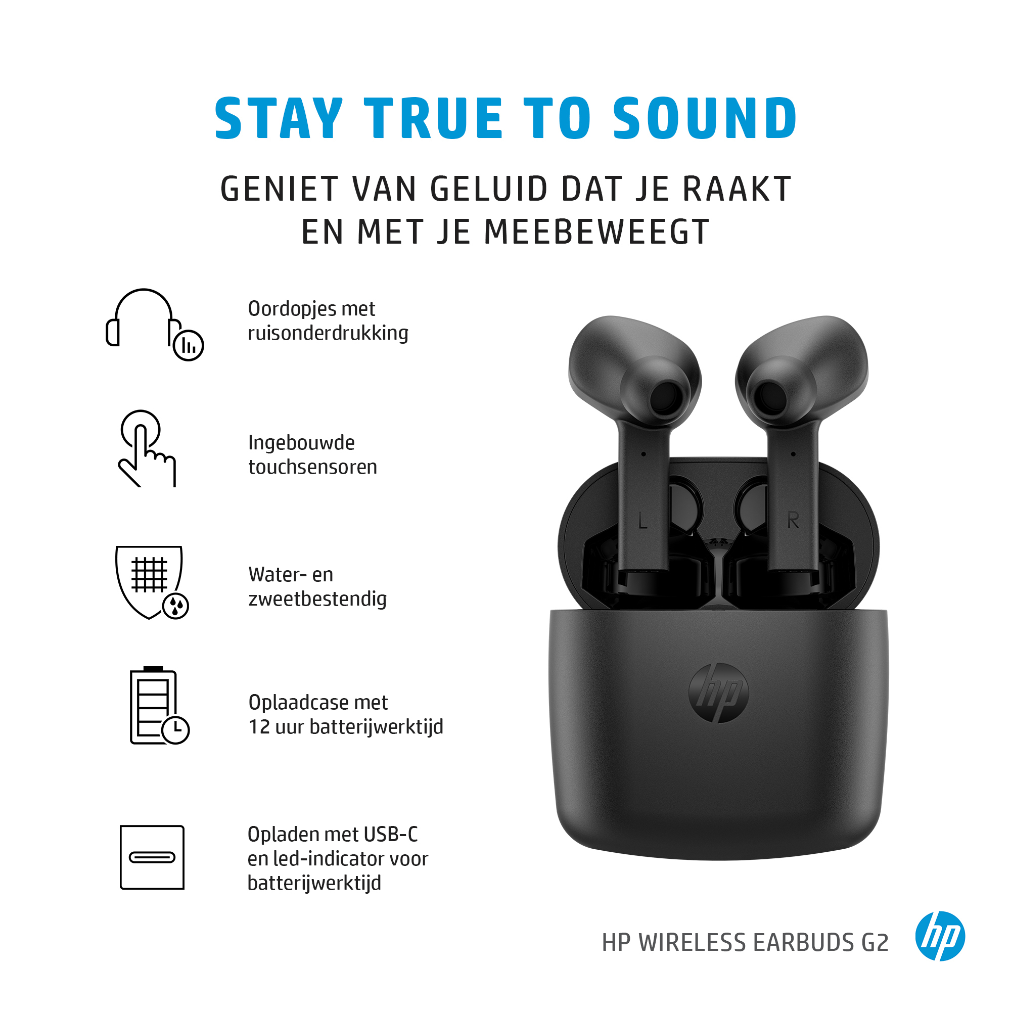 HP draadloze oordopjes G2, Draadloos, Muziek, 12 g, Hoofdtelefoons, Zwart