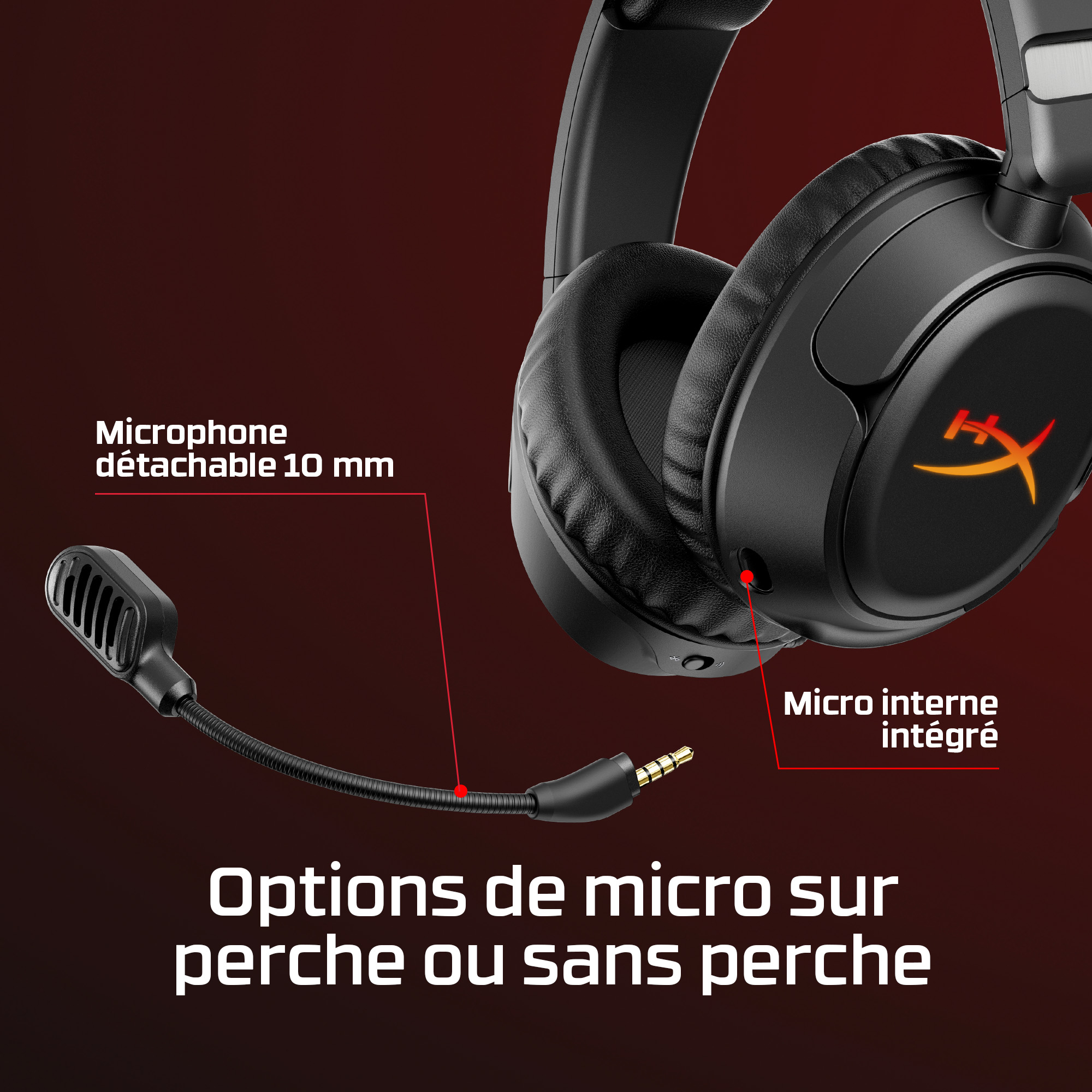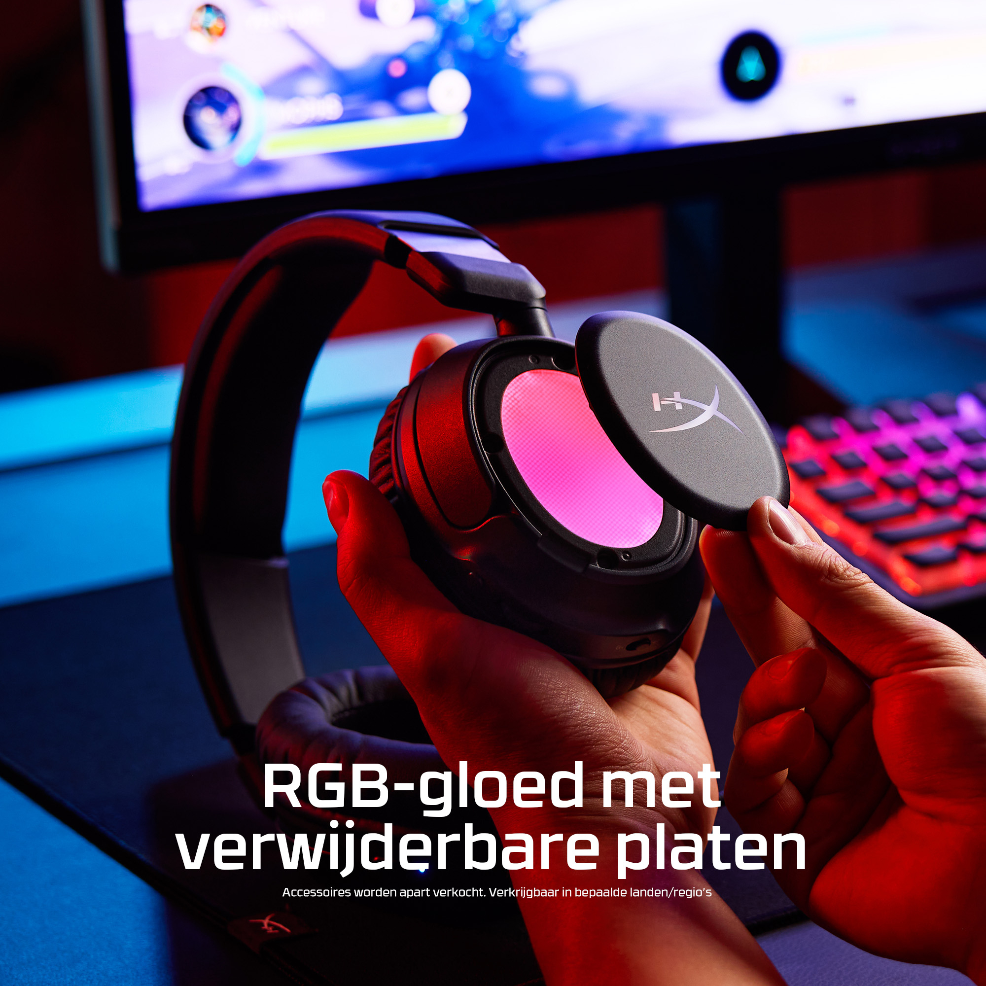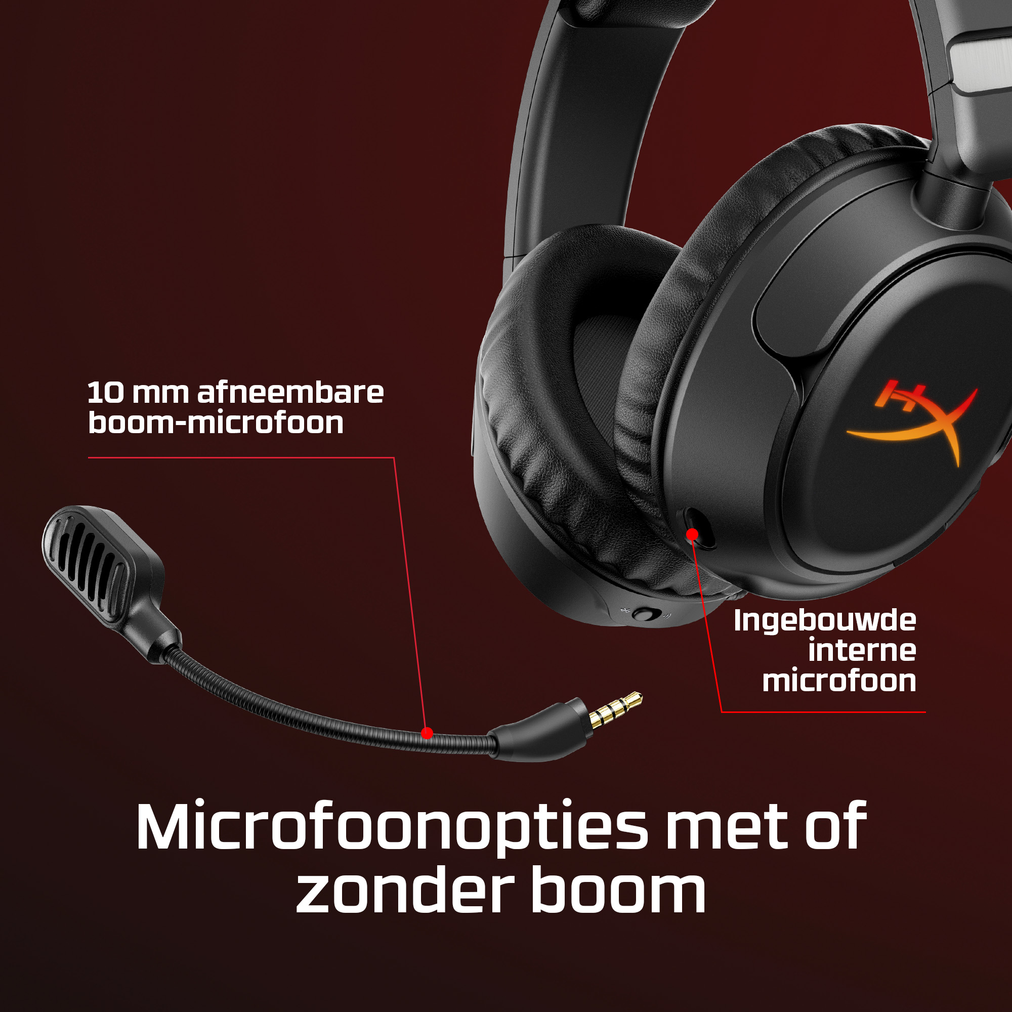 De HyperX Cloud Flight 2 verlicht elke game met de verwisselbare, magnetische oorschelpcovers die volledig oplichten in RGB en die je snel en zonder gereedschap kunt verwisselen. Verander de look, bewaar één lichtprofiel op de headset en laat je headset perfect aansluiten bij je speelstijl, rank of stream-setup. De headset is gemaakt voor lange gamesessies. Zet de verlichting uit om batterij te sparen en speel tot 100 uur[2] via 2,4 GHz of tot 150 uur[2] via Bluetooth[3]. Dankzij Instant Pair[4] kun je zonder dongel verbinding maken met bepaalde OMEN-laptops. Met een simpele schakelaar wissel je vervolgens tussen 2,4 GHz en Bluetooth. Speel comfortabel door met zachte oorkussens van memory foam, 90° draaiende oorschelpen en stevige stalen schuifregelaars. Met de schuin geplaatste 50-mm drivers word je de game ingezogen met een geluid dat speciaal is afgestemd op gamers. Voor heldere communicatie gebruik je de afneembare 10-mm boom-microfoon, of de ingebouwde microfoon als je niet gamet. De bediening voor audio, microfoon, media en verlichting zit op de headset zelf, zodat je alles zonder gedoe met menu’s of andere afleidingen kunt regelen. Met de HyperX Cloud Flight 2 zit je comfortabel en zie je er stijlvol uit, of je nu gamet, muziek of video’s streamt, op Twitch zit of aan het werk bent. De aanpasbare RGB-verlichting is de perfecte finishing touch.