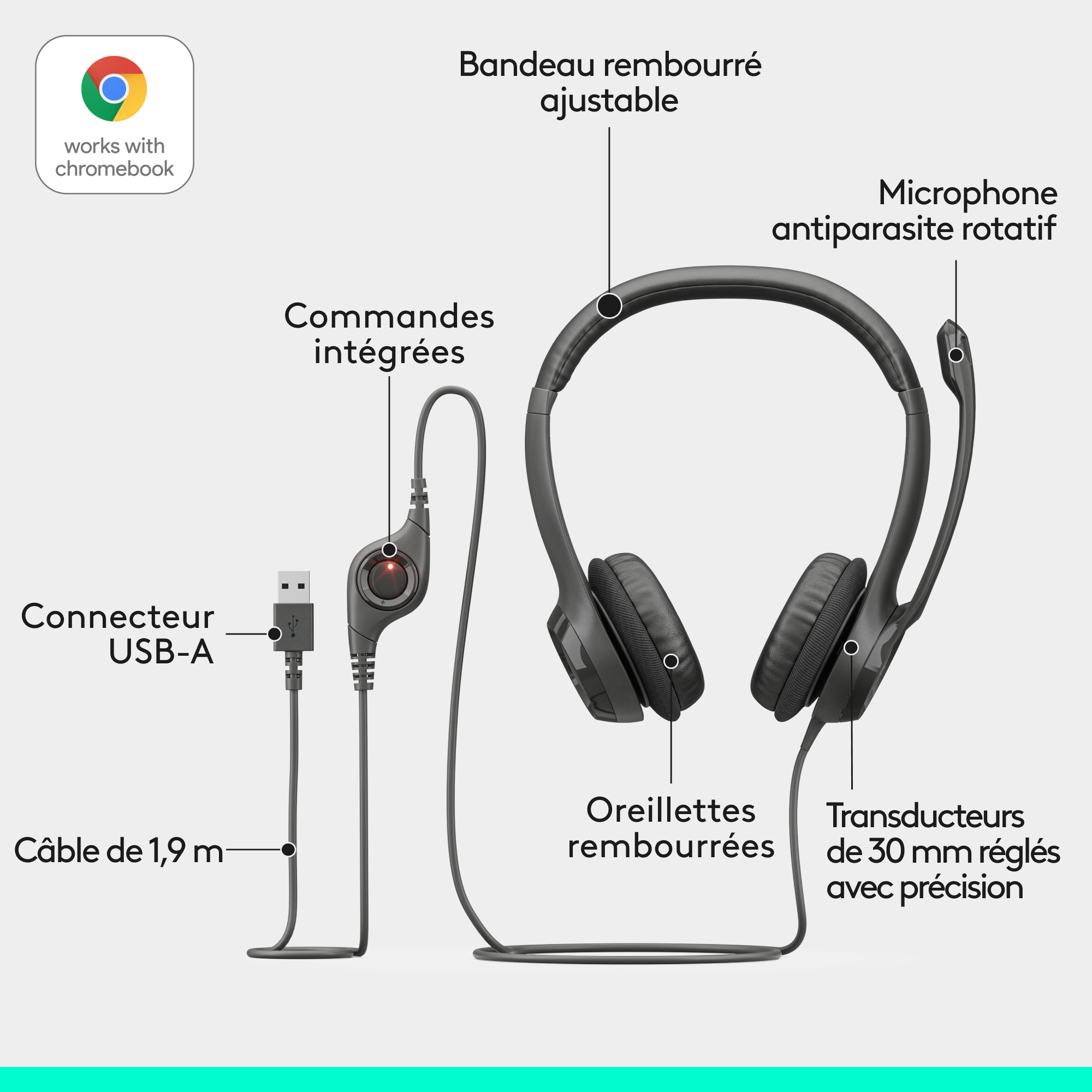 Logitech LGT-H390, Headset, Hoofdband, Kantoor/callcenter, Zwart, Stereofonisch, Lijnbesturingseenheid