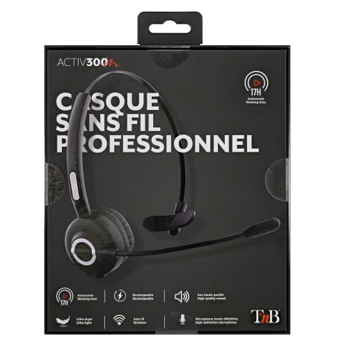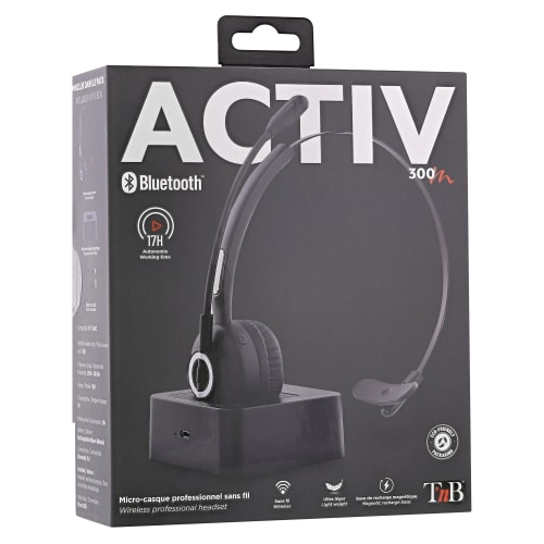 T'nB ACTIV 300M. Type product: Headset. Connectiviteitstechnologie: Draadloos, Bluetooth. Aanbevolen gebruik: Kantoor/callcenter. Frequentiebereik koptelefoon: 20 - 20000 Hz. Kleur van het product: Zwart