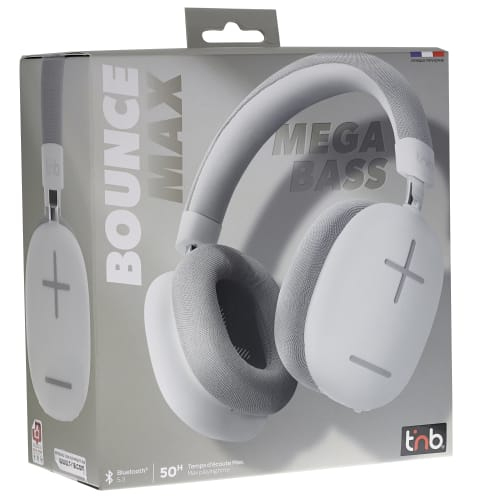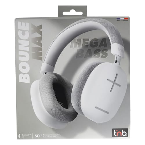 T'nB BOUNCE MAX. Type product: Headset. Connectiviteitstechnologie: Bedraad en draadloos, Bluetooth. Aanbevolen gebruik: Oproepen/muziek. Frequentiebereik koptelefoon: 20 - 20000 Hz. Aansluitbereik: 10 m. Kleur van het product: Grijs, Wit