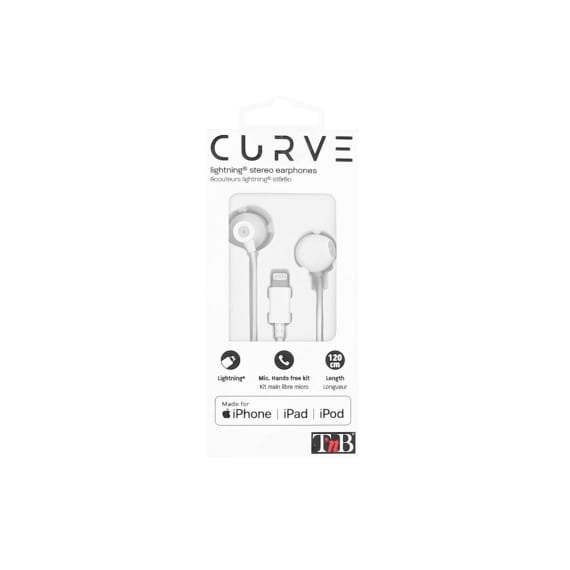 T'nB CURV. Type product: Headset. Connectiviteitstechnologie: Bedraad. Aanbevolen gebruik: Oproepen/muziek. Frequentiebereik koptelefoon: 20 - 20000 Hz. Snoerlengte: 1,2 m. Gewicht: 13 g. Kleur van het product: Wit