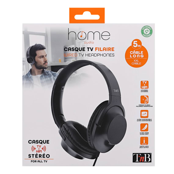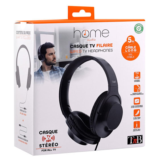 T'nB CSHOME3. Type product: Hoofdtelefoons. Connectiviteitstechnologie: Bedraad. Aanbevolen gebruik: TV. Frequentiebereik koptelefoon: 20 - 20000 Hz. Snoerlengte: 2 m, Kleur van het product: Zwart