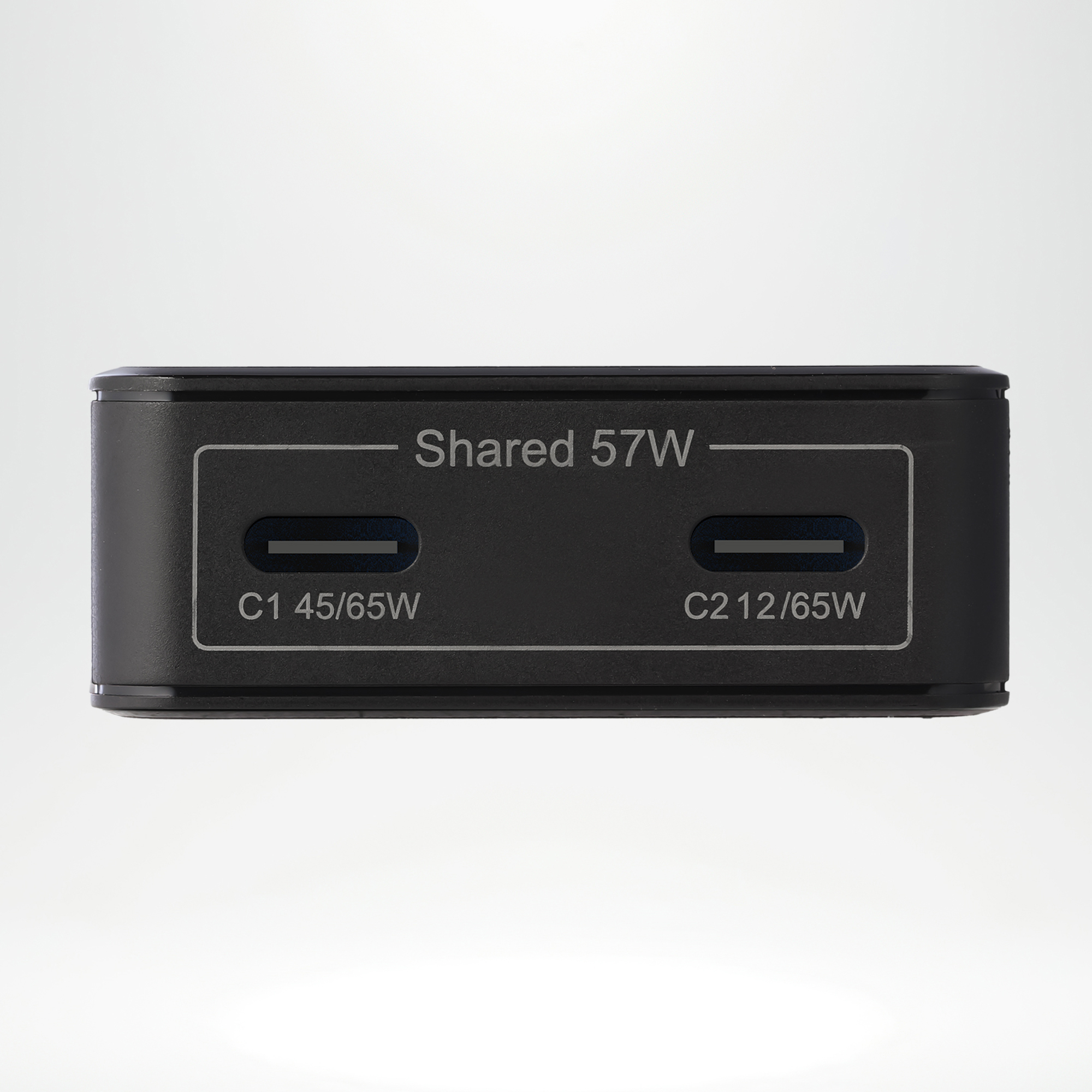 De oplader is superklein en daarom ideaal voor onderweg. Twee apparaten tegelijk opladen is geen probleem; deze oplader heeft twee USB-C poorten die beide 65W leveren. Dit maakt deze oplader ook geschikt voor het opladen van je laptop.