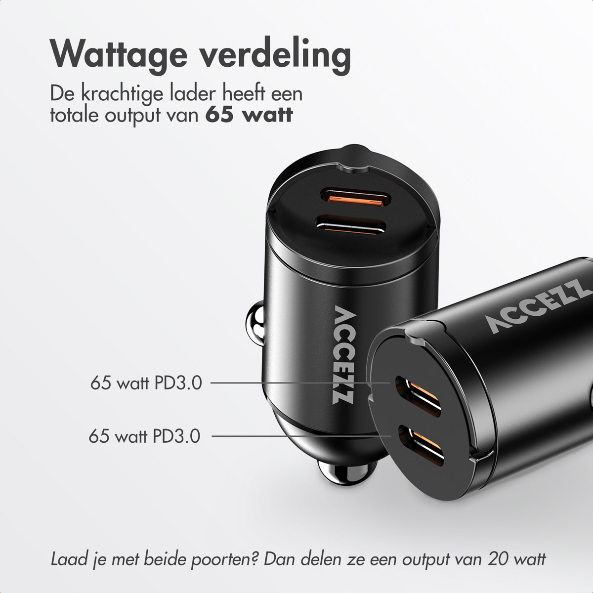 Waarom de Accezz Autolader - Snellader met 2 poorten - 2x USB-C 65 watt?