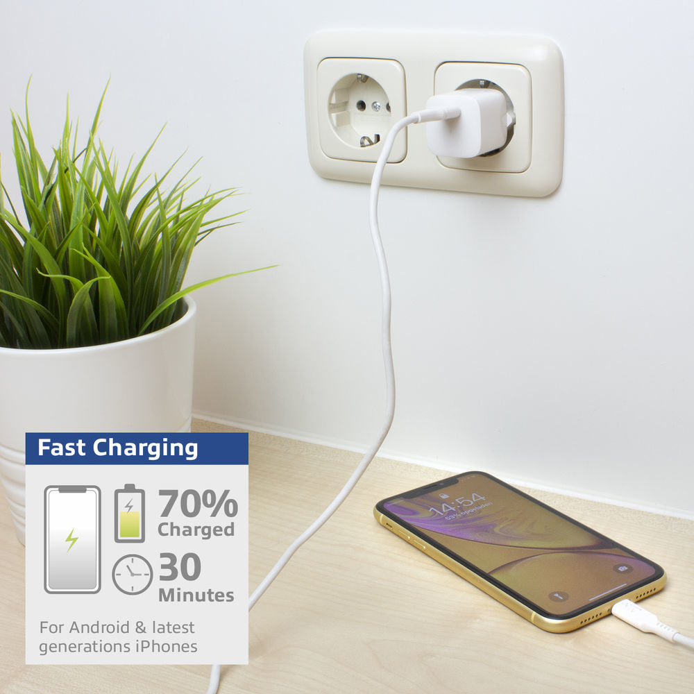 De 33W USB-C Lader laadt jouw Apple en Android smartphone of tablet snel op: 70% opgeladen in maar 30 minuten. De AC2130 is uitgerust met Power Delivery. Deze krachtige maar compacte USB-C-lader is gemakkelijk mee te nemen. De USB-C-lader stopt automatisch met laden wanneer de batterij opgeladen is.