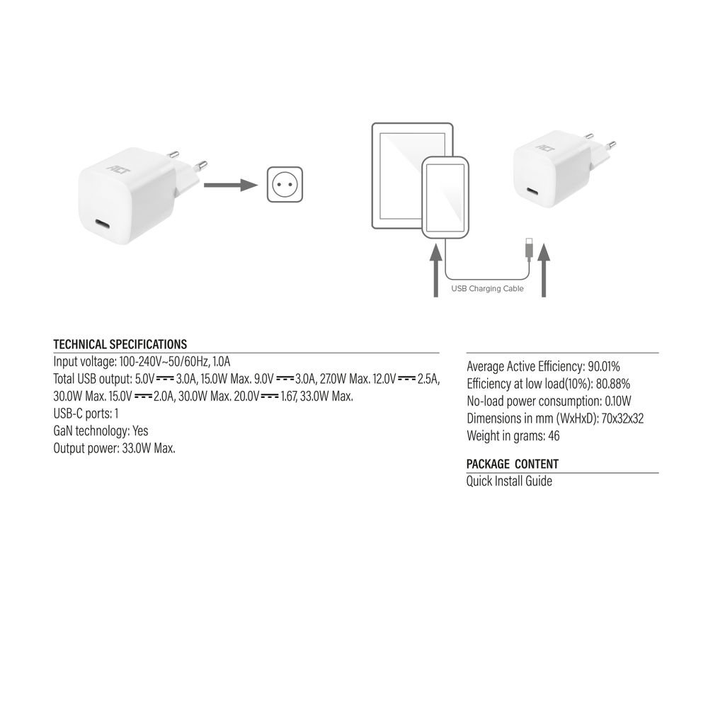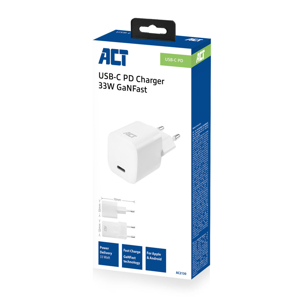 De AC2130 USB-C Lader is een 33W-lader is ontworpen voor het opladen van de laatste iPhones. Sluit jouw iPhone aan op de ACT 33W USB-C Fast Charger en de smartphone wordt tot 70% opgeladen in maar 30 minuten.