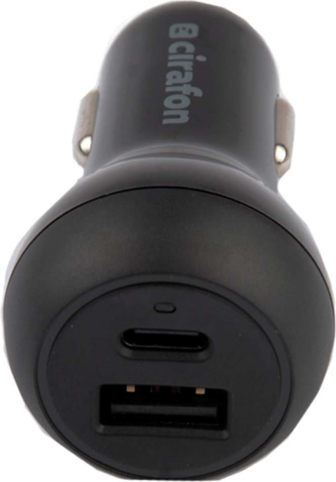 Met deze Cirafon-auto-oplader 30W kun je snel een of twee mobiele apparaten opladen zonder het risico van oververhitting of kortsluiting. Goedgekeurde snellader voor bijv. iPhone met USB-C naar Lightning-kabel en ook Android-telefoons met ondersteuning voor snel opladen.