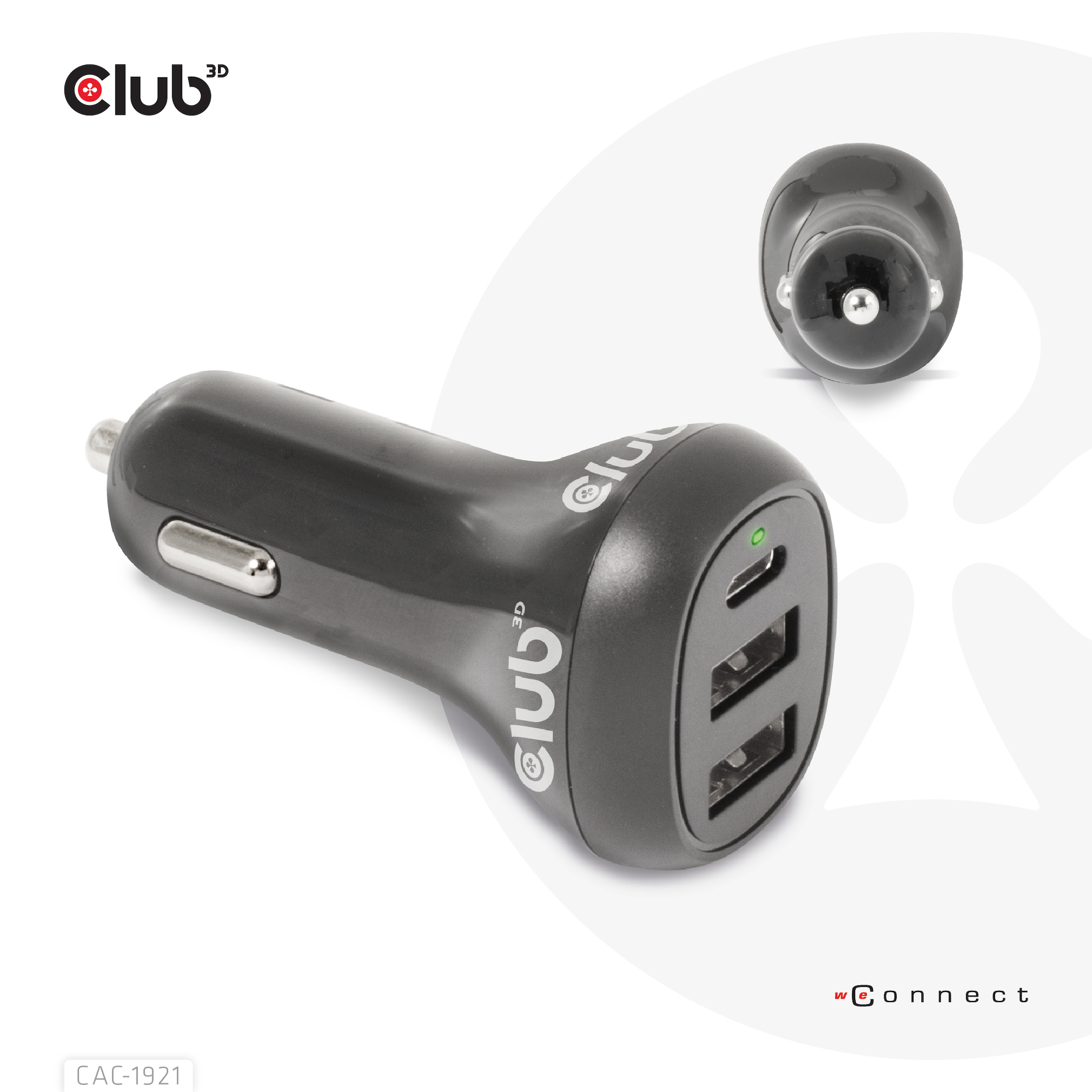 CLUB3D Notebook / Laptop Car Charger 36 Watt. Type oplader: Auto, Type stroombron: Sigarettenaansteker, Lader compatibiliteit: Laptop. Uitgangsspanning (max): 24 V. Aantal USB 2.0-poorten: 2, Aantal USB-Type-C-poorten: 1, Stroomspanning bescherming: Overstroom, Overspanning, Overbelasting, Kortsluiting. Kleur van het product: Zwart
