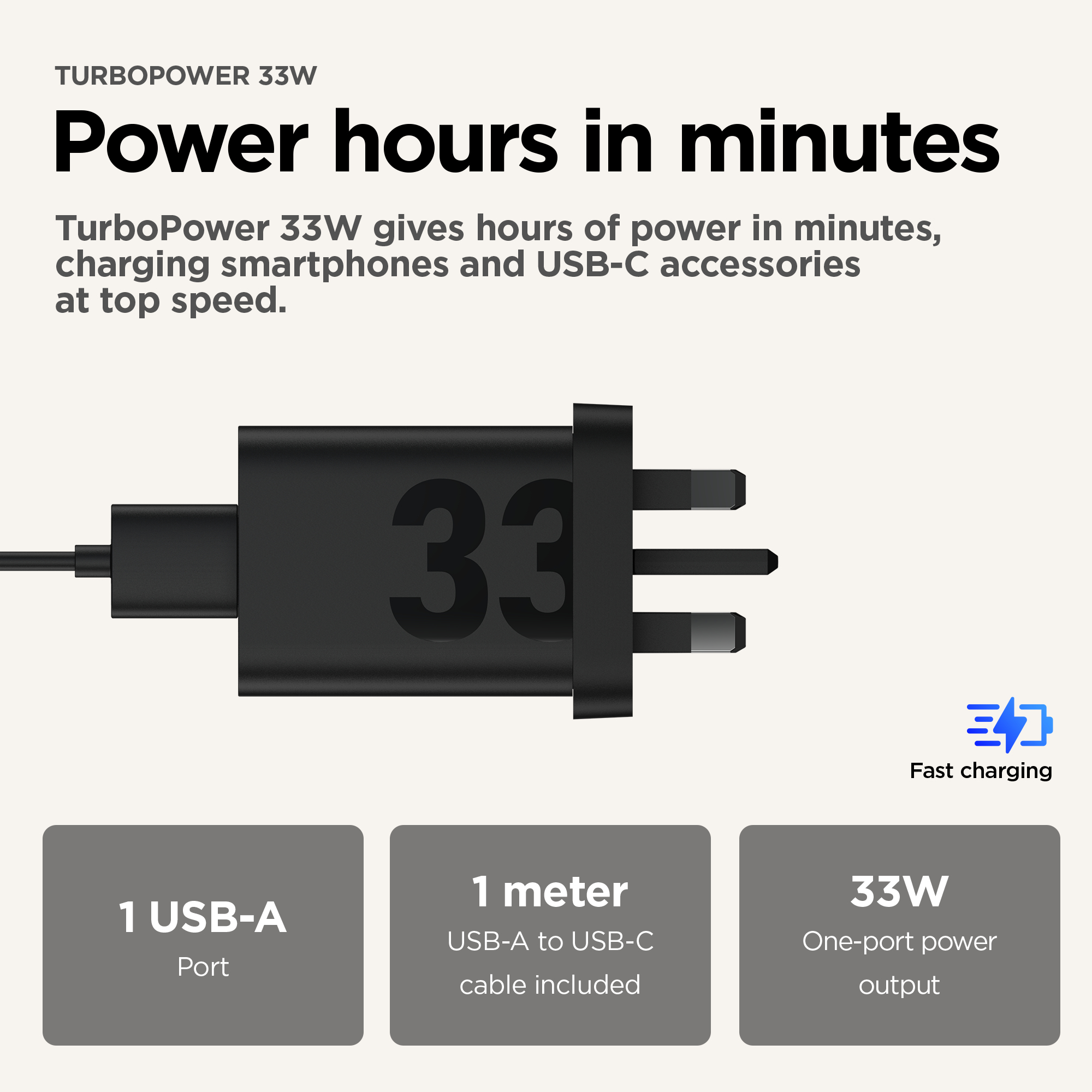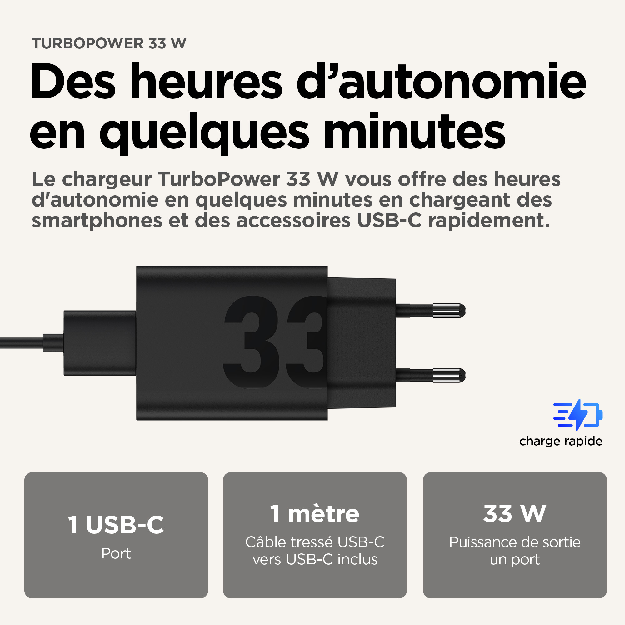 TurboPower 33W, 1 x USB-C, 33W max, 100V - 240V, 6.5A, GaN, 1 m, EU