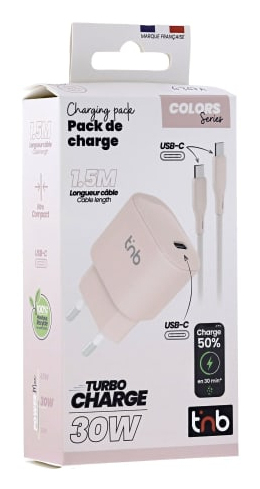T'nB CHPDTC30PK. Type oplader: Binnen, Type stroombron: AC, Lader compatibiliteit: Universeel. Ingangsspanning: 100 - 240 V. Aantal USB-Type-C-poorten: 1. Snoerlengte: 1,5 m, Kleur van het product: Roze