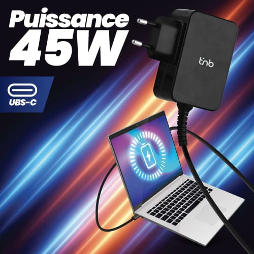 T'nB CHNBTC45W. Type oplader: Binnen, Type stroombron: AC, Lader compatibiliteit: Universeel. Ingangsspanning: 100 - 240 V, Uitgangsspanning (max): 20 V, AC-adapter, uitgangsstroom: 2,25 A. Snoerlengte: 1,8 m, Kleur van het product: Zwart