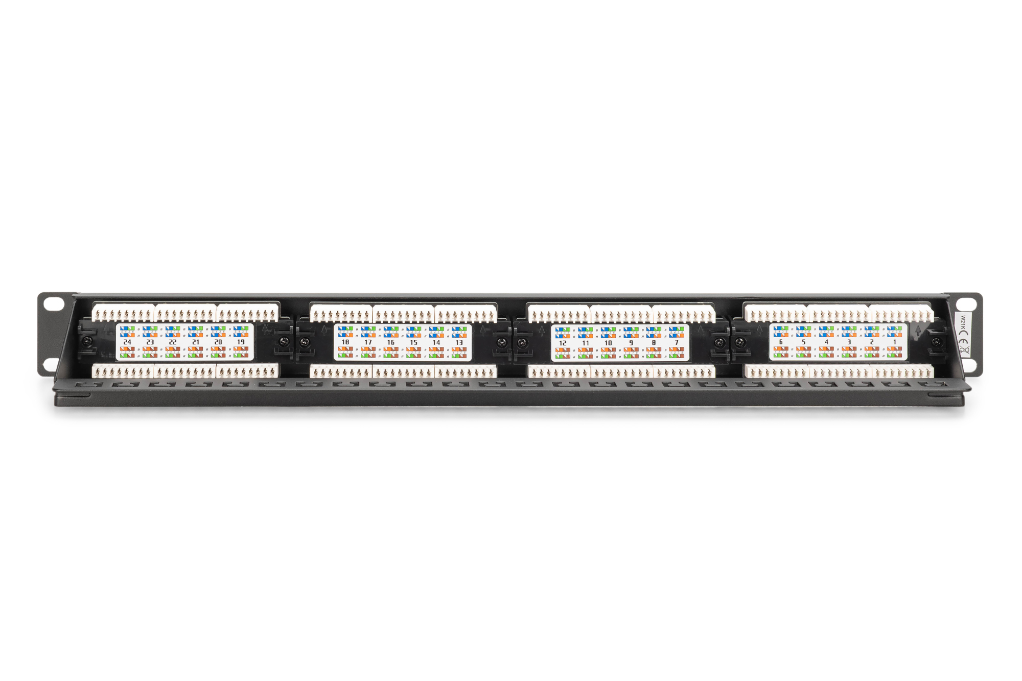 Digitus DN-91624U-CR. Bekabelingstechnologie: 10/100/1000Base-T(X), Aansluiting(en): RJ-45, Contact geleider materiaal: Nikkel. Montage: Rekmontage, Rackcapaciteit: 1U, Kleur van het product: Zwart. Breedte: 485 mm, Hoogte: 45 mm, Diepte: 30 mm. Breedte verpakking: 560 mm, Diepte verpakking: 80 mm, Hoogte verpakking: 100 mm