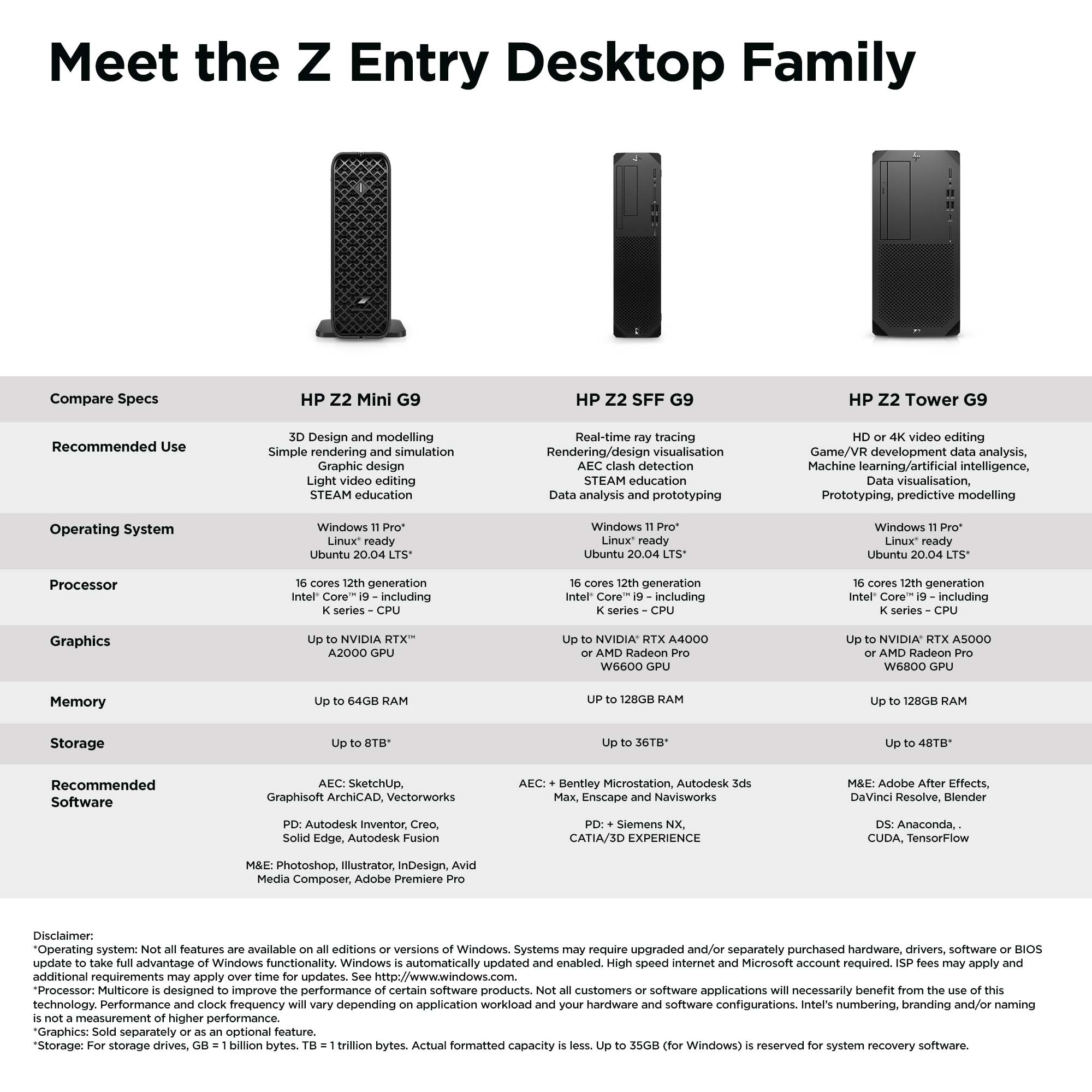 HP Z2 G9, 3,4 GHz, Intel® Core™ i7, i7-13700K, 32 GB, 1 TB, Windows 11 Pro