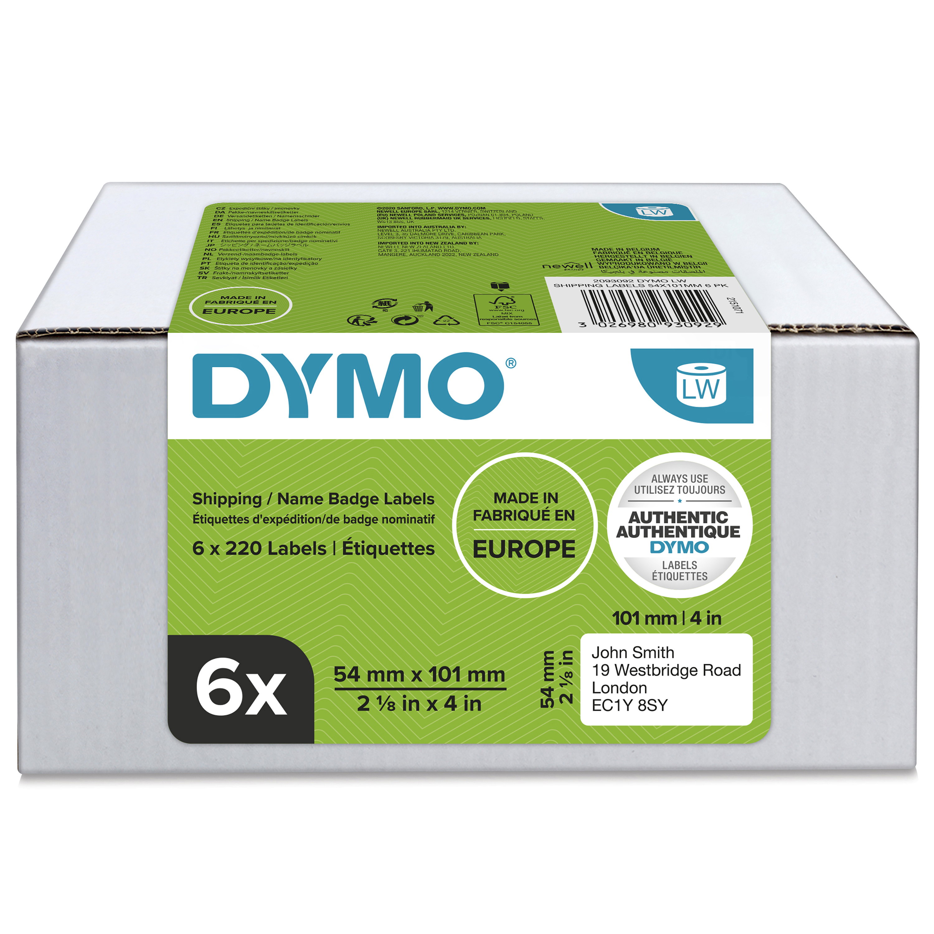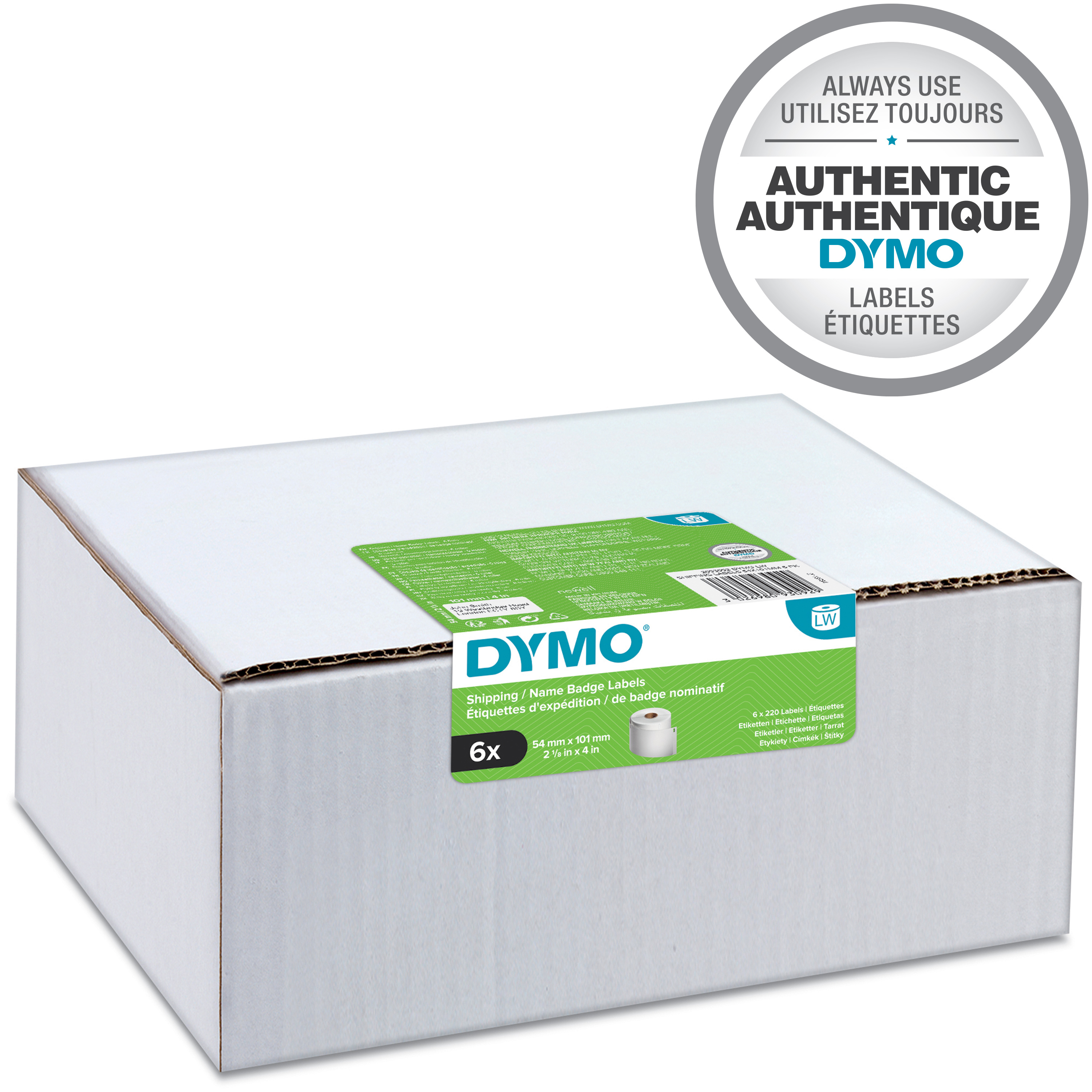 DYMO originele LabelWriter grote verzendlabels/naamkaarten | 54 mm x 101 mm | 6 rollen met elk 220 labels (1320 zelfklevende etiketten) | Geschikt voor de LabelWriter labelprinters | Gemaakt in Europa