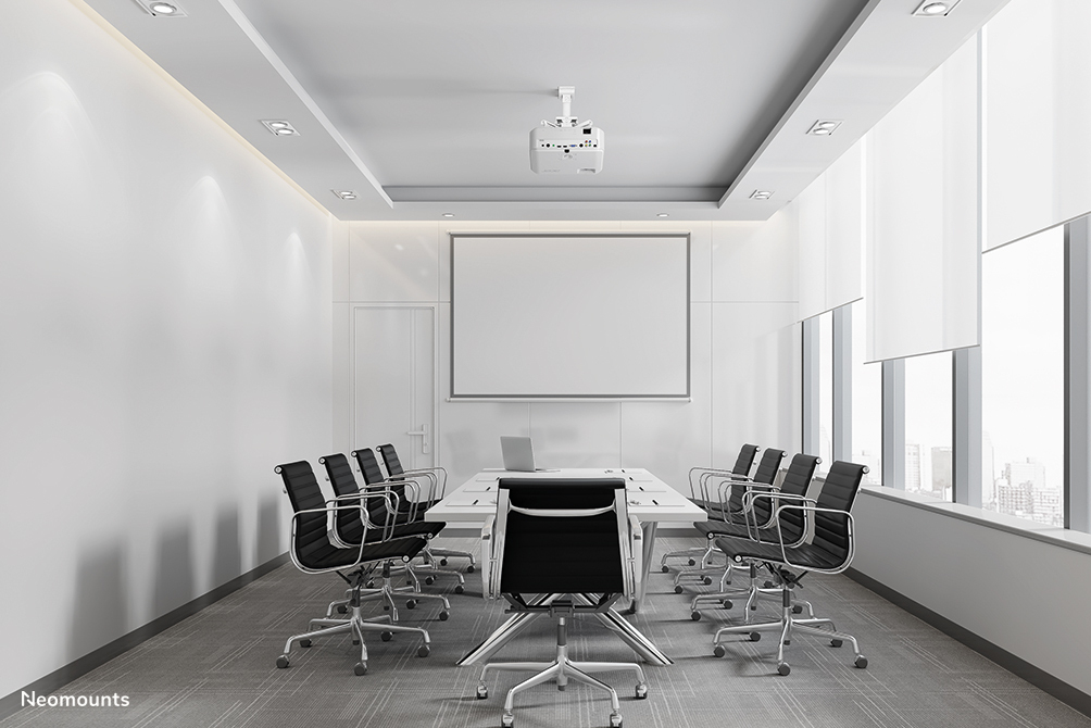 De Neomounts CL25-530WH1 is uitgerust met een handig Easy-release systeem, wat de installatie aanzienlijk vergemakkelijkt; (de)monteren van de projector aan de projectorsteun kan met het grootste gemak en door één persoon worden uitgevoerd. Door de ronde paal is installatie aan een systeemplafond bovendien zeer eenvoudig. Tot slot is de buis van de Neomounts projectorsteun aan de plafondzijde kantelbaar, waardoor de projectorsteun moeiteloos tegen een schuin plafond kan worden geïnstalleerd. De bevestiging van de projectorsteun zelf is solide en stevig en daardoor trillingsvrij.
