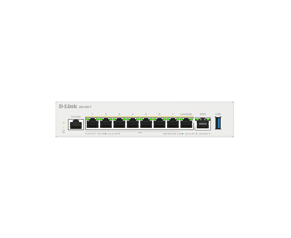 D-Link DBR-600-P/B, Ethernet WAN, 2.5 Gigabit Ethernet, Wit