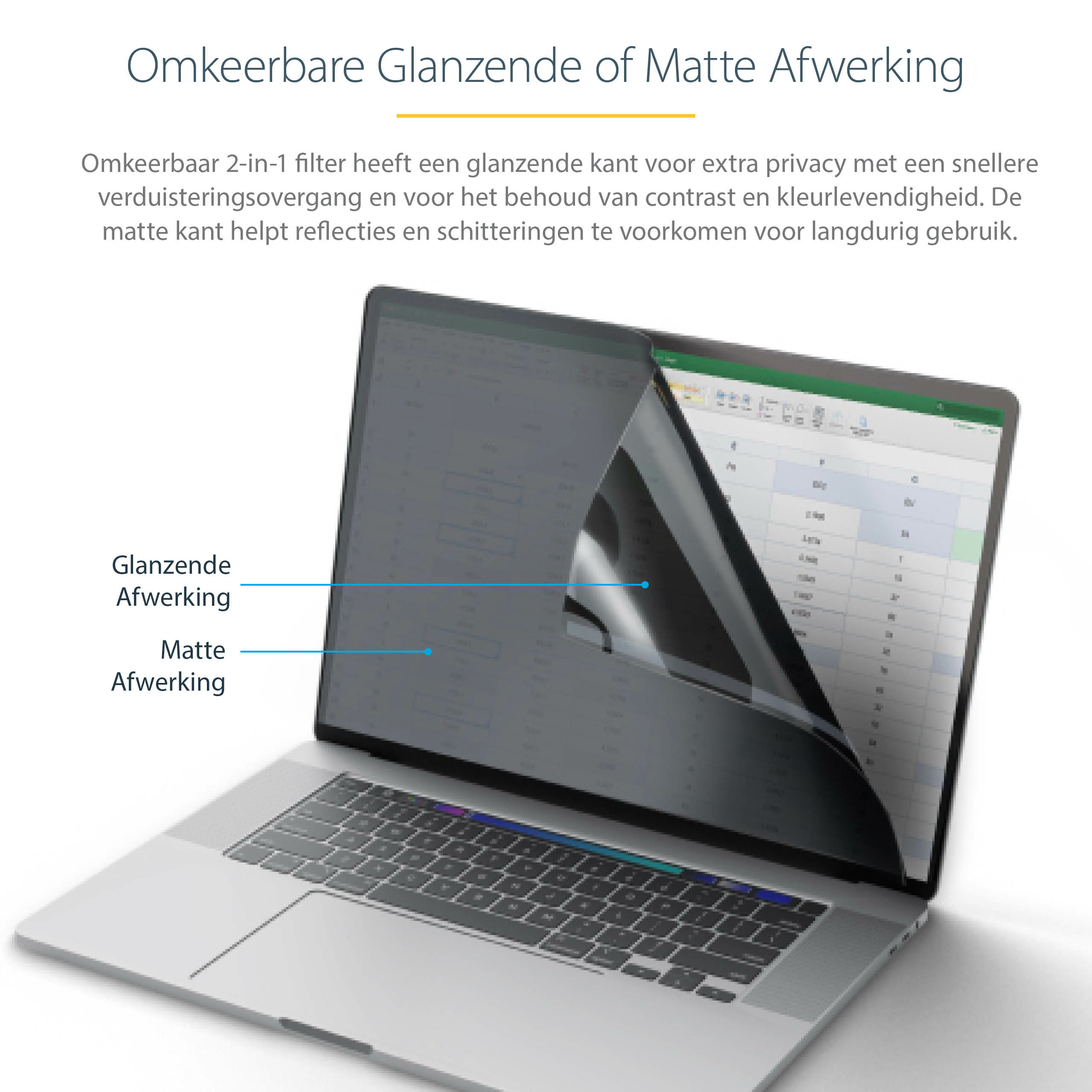 StarTech.com 14-inch Macbook Pro 21/23 Laptop Privacy Filter, Anti-Glans Privacyscherm met 51% Blauw Licht Reductie, Monitor Screen Protector met +/- 30 grad. Kijkhoek, Omkeerbare Matte/Glanzende zijden, 35,6 cm (14"), Laptop, Randloze privacyfilter voor