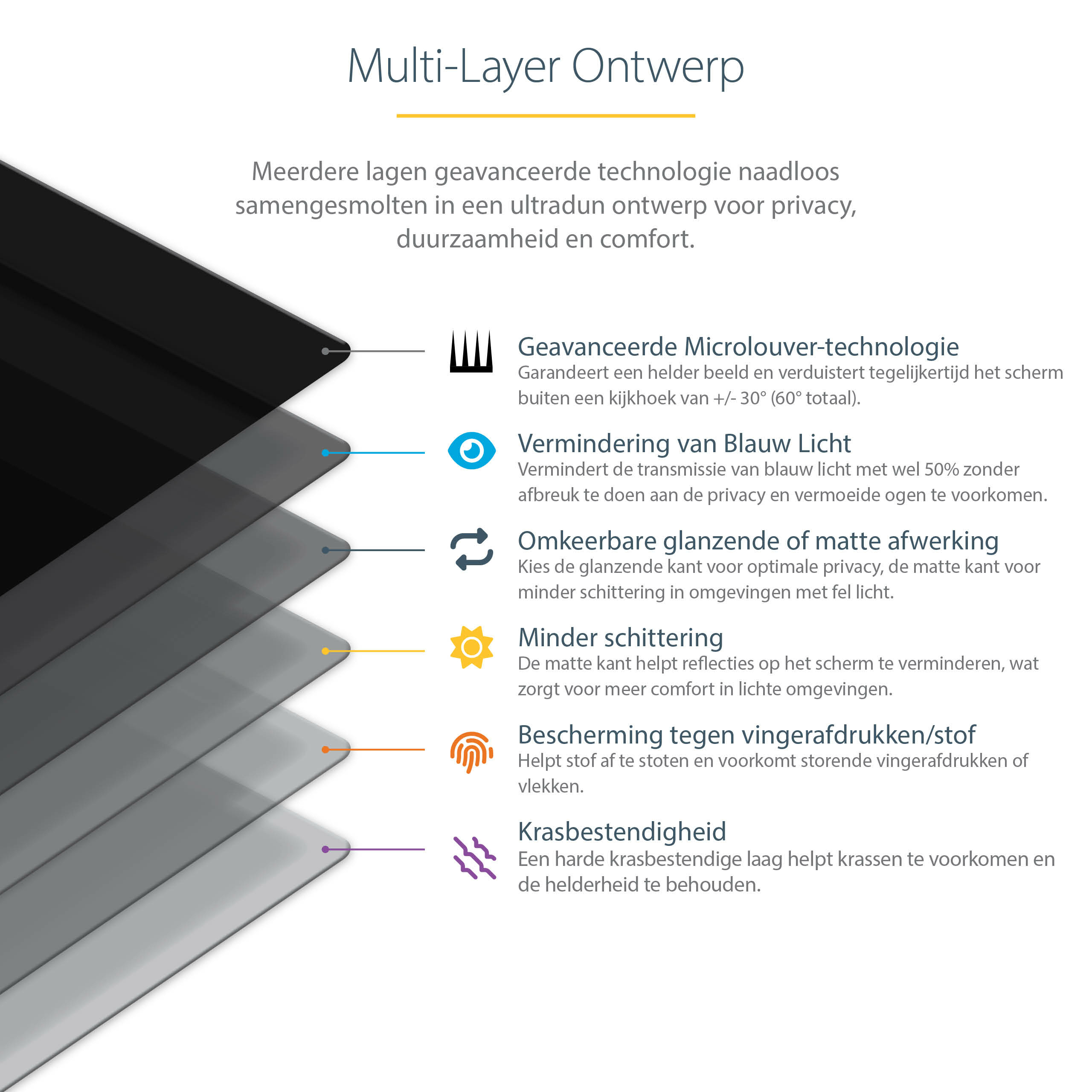 Voorkom ongewenst meekijken op uw scherm door de kijkhoek van uw 14" Macbook Pro te beperken.