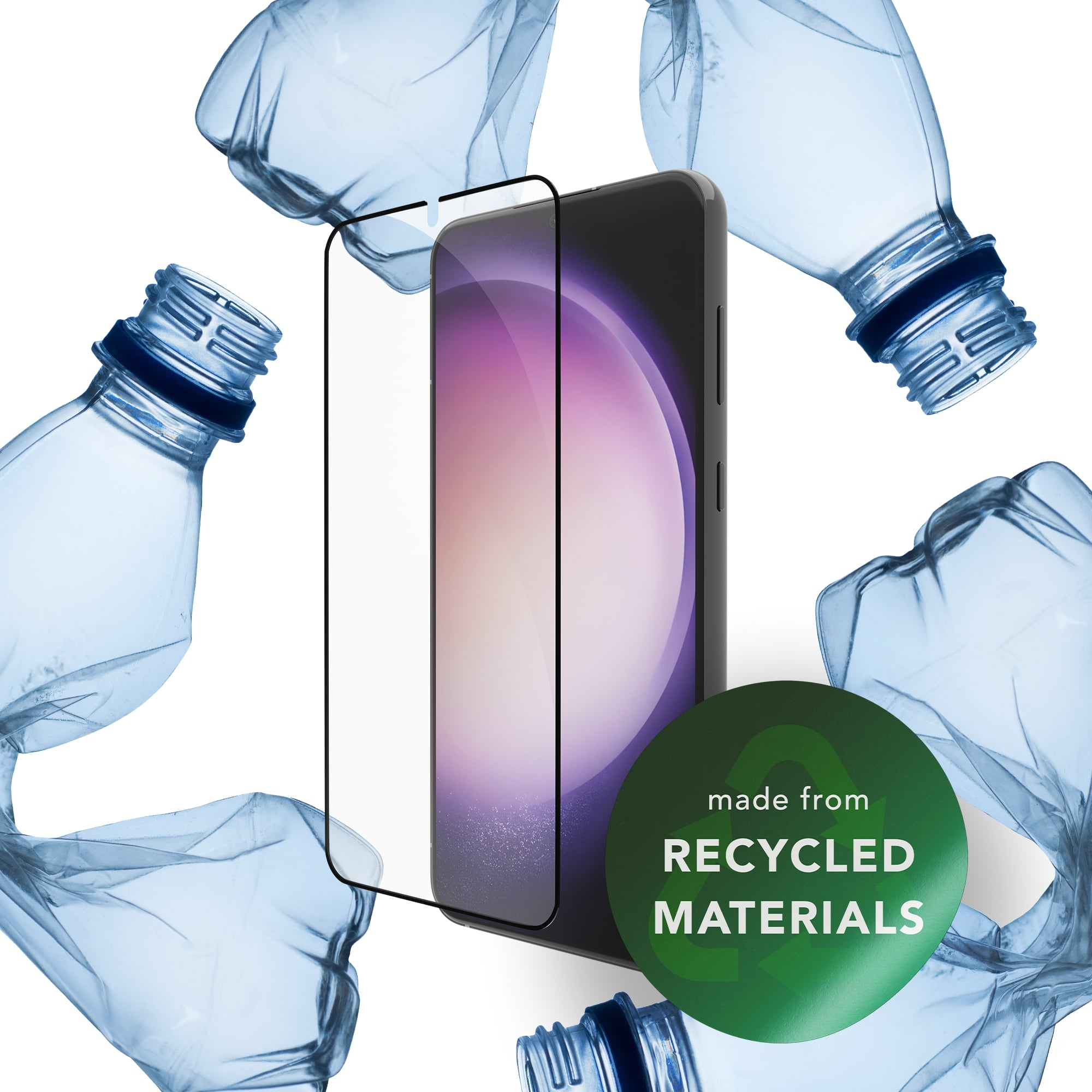 dbramante1928 Eco-Shield. Merkcompatibiliteit: Samsung, Compatibiliteit: Galaxy S23, Veiligheidsfunties: Stofafstotend, Krasbestendig. Materiaal: Polyethyleentereftalaat (PET), Kleur van het product: Zwart, Transparant. Aantal per verpakking: 1 stuk(s)