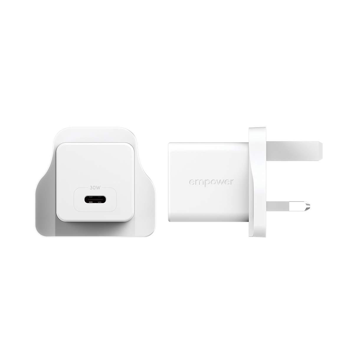 PanzerGlass empower by ® Turbo 30W Charger Single USB-C | UK Plug | Silver White, Universeel, Universal - Universal, Droge toepassing, Wit, 1 stuk(s)