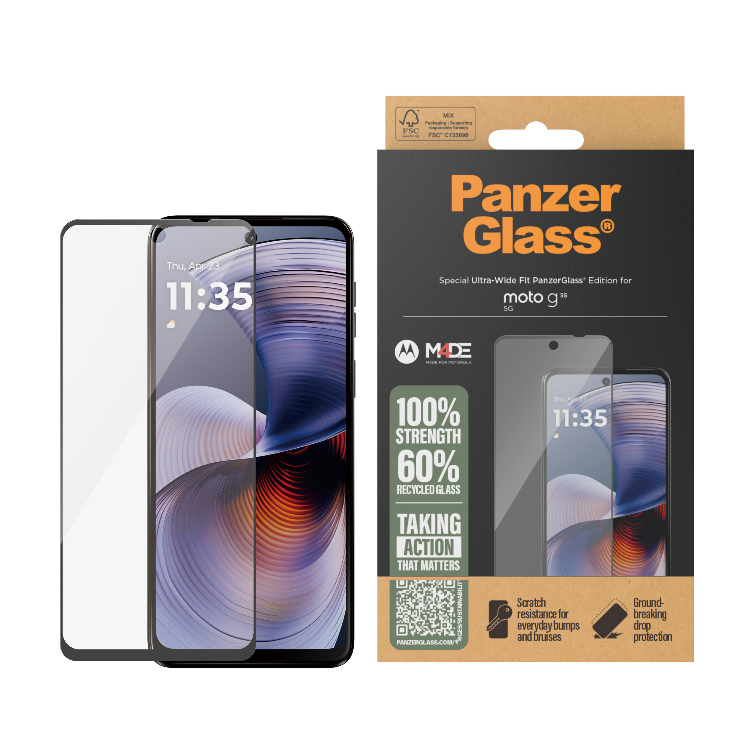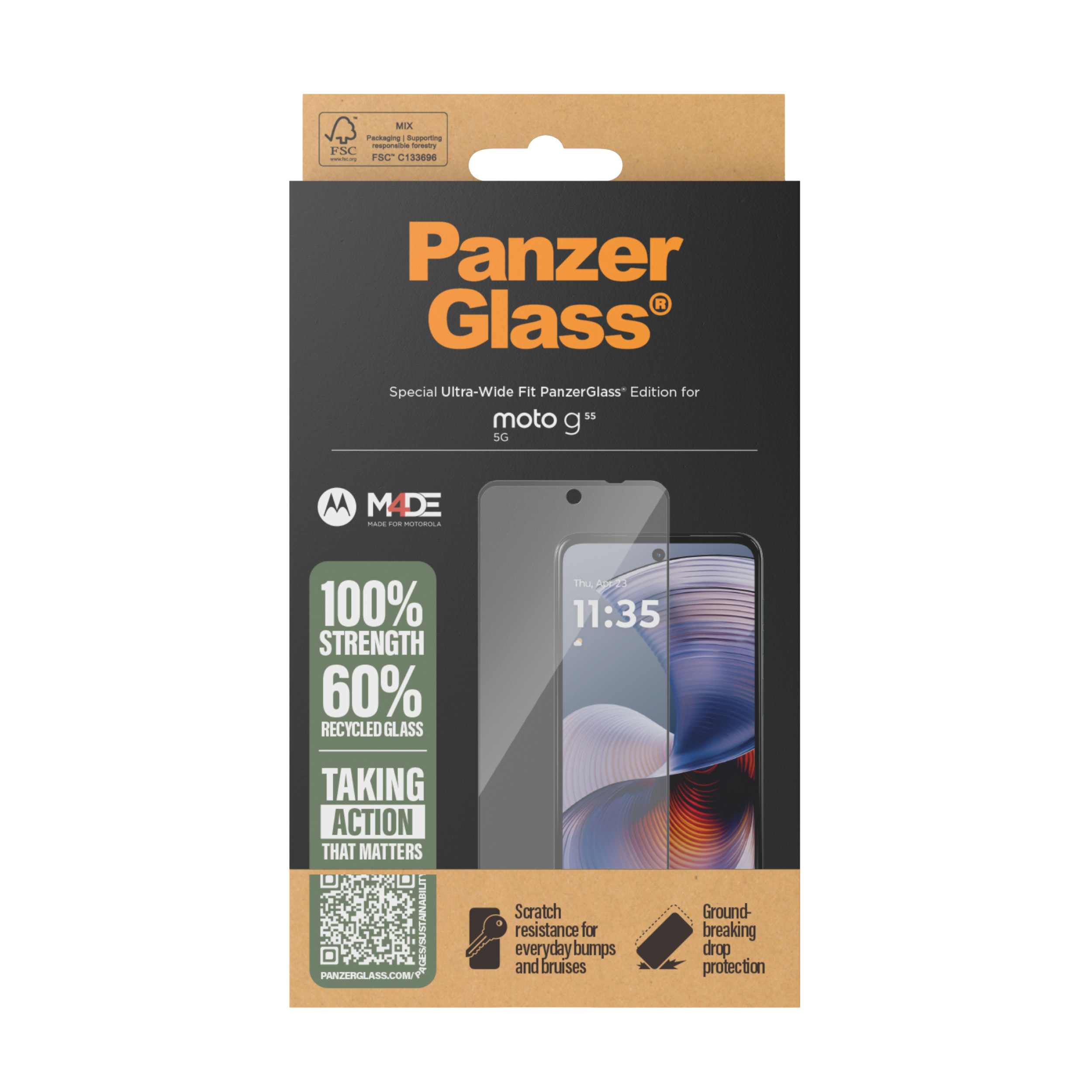 PanzerGlass ® Screen Protector Motorola moto g55 5G | Ultra-Wide Fit, Motorola, Motorola - Moto G55 5G, Droge toepassing, Krasbestendig, Schokbestendig, Transparant, 1 stuk(s)