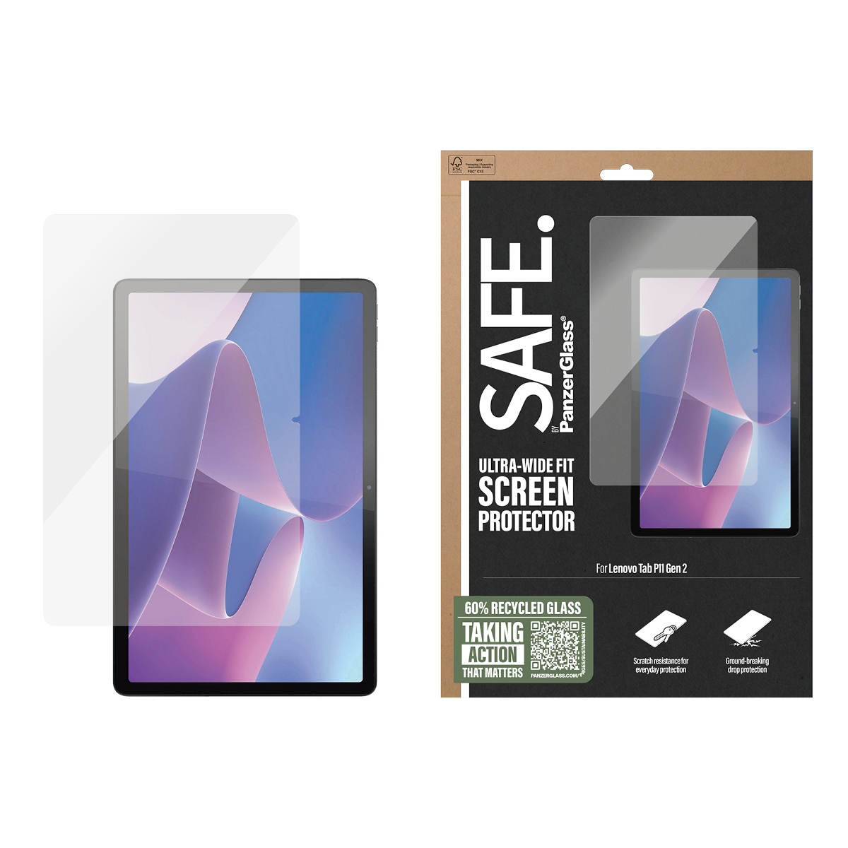 PanzerGlass SAFE. by ® Screen Protector Lenovo Tab P11 (2nd Gen) | Ultra-Wide Fit, Lenovo, Lenovo - Tab P11 Gen 2, Droge toepassing, Krasbestendig, Schokbestendig, Transparant, 1 stuk(s)