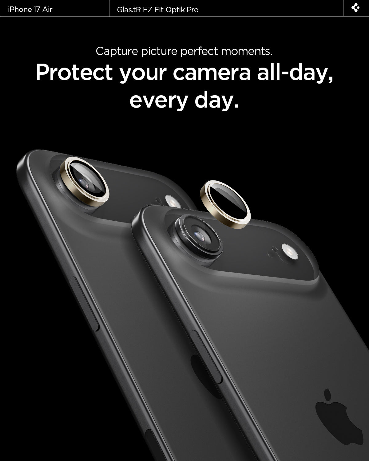 Spigen Glas.tR EZ Fit Optik Pro. Merkcompatibiliteit: Apple, Compatibiliteit: iPhone Air. Materiaal: Gehard glas, Kleur van het product: Goud. Aantal per verpakking: 2 stuk(s)